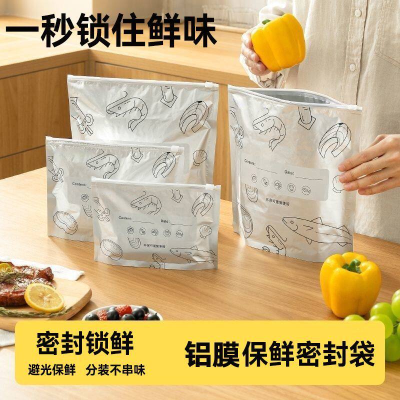 铝箔保鲜密封袋食品级冰箱家用冻肉蔬菜食物抗菌分装收纳袋拉链式