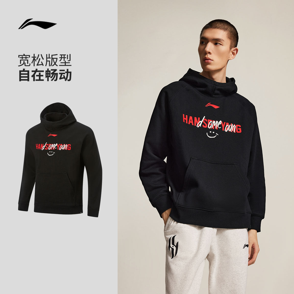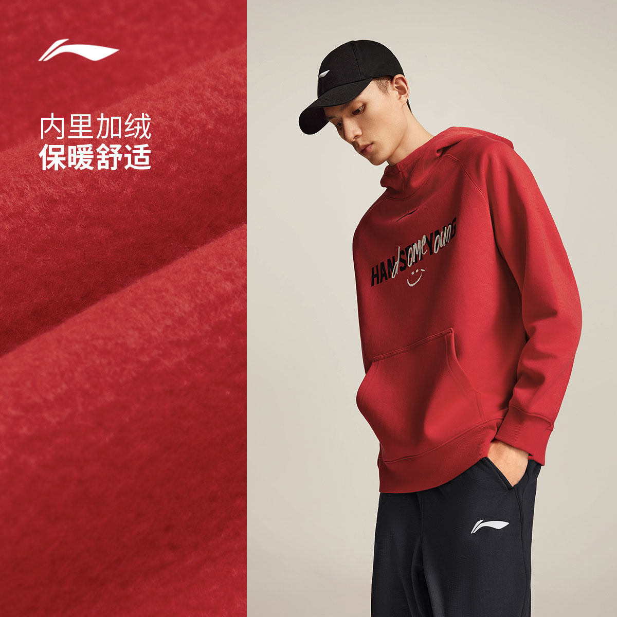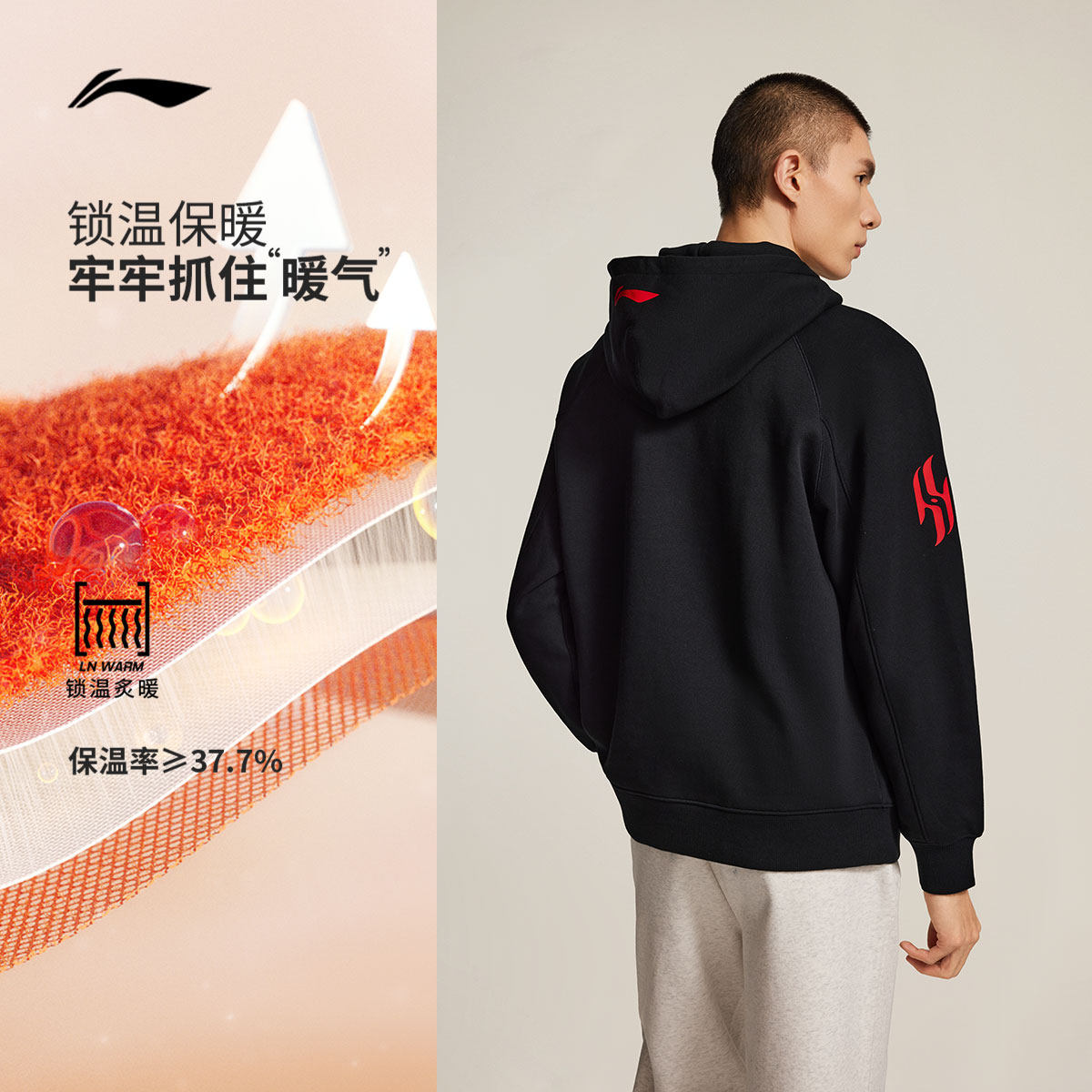 李宁杨瀚森篮球系列卫衣男士官方新款宽松冬季加绒保暖针织运动服