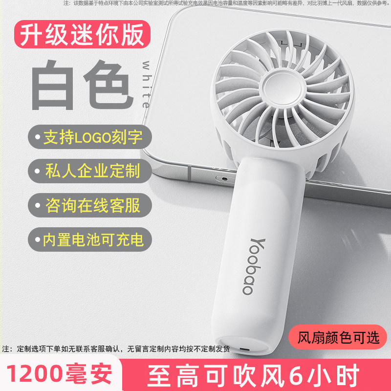 羽博手持USB可充电小风扇logo定制刻字迷你随身挂绳学生口袋风扇大风力三档便携mini办公室户外电风扇