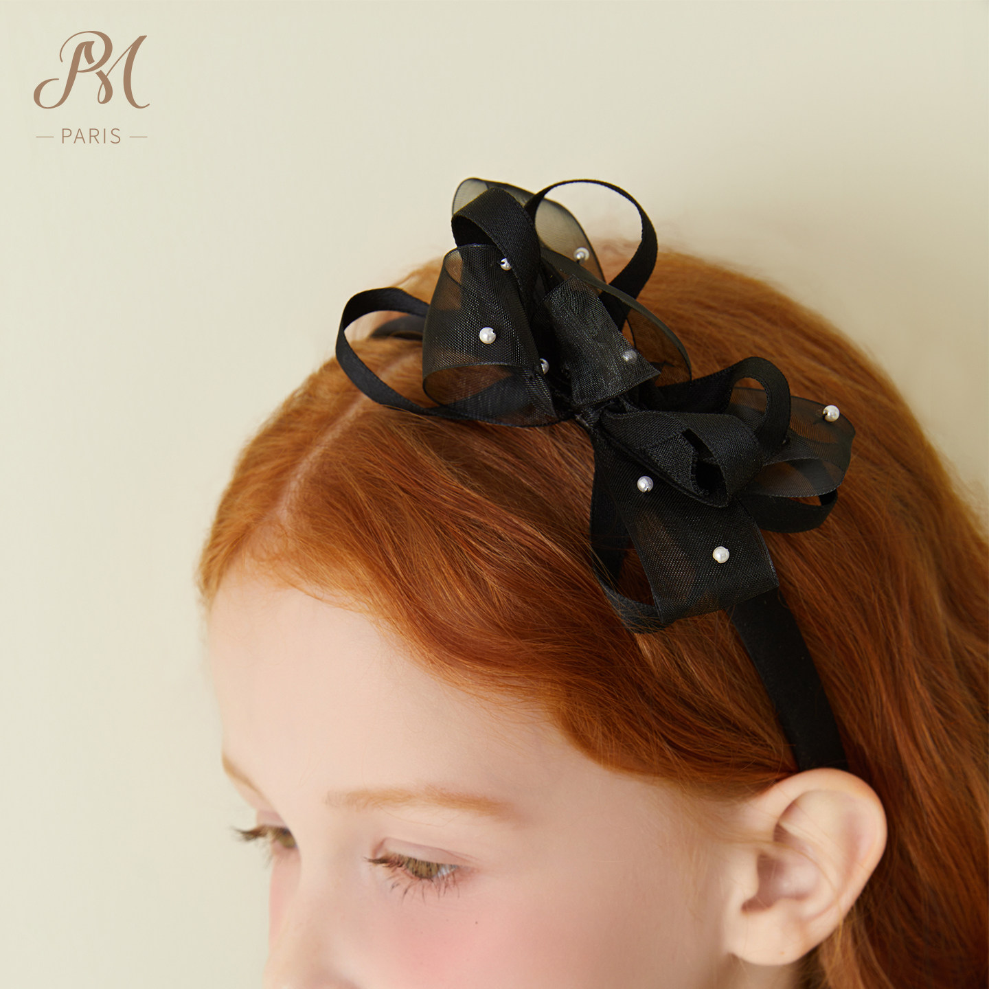 Petite Marguerite小雏菊童装千金感气质黑色立体蝴蝶结珍珠发箍