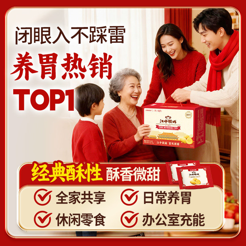 【交个朋友年货节】江中猴姑酥性饼干600g养胃猴头菇年货送礼盒