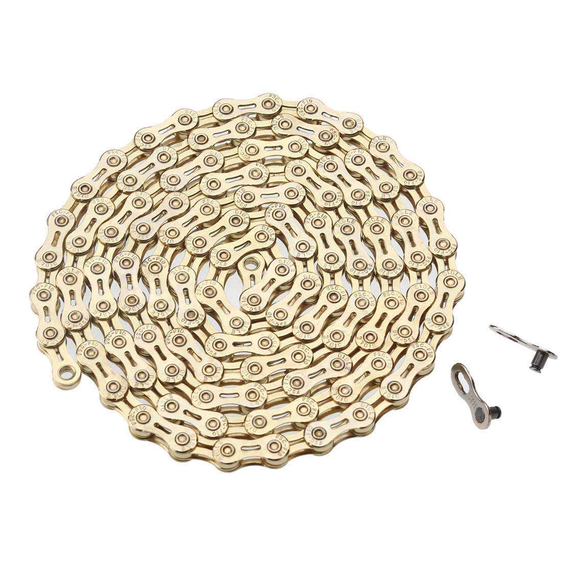 山地车10速镂空变速链条公路车通用兼容9速轻量金色银色全电镀防