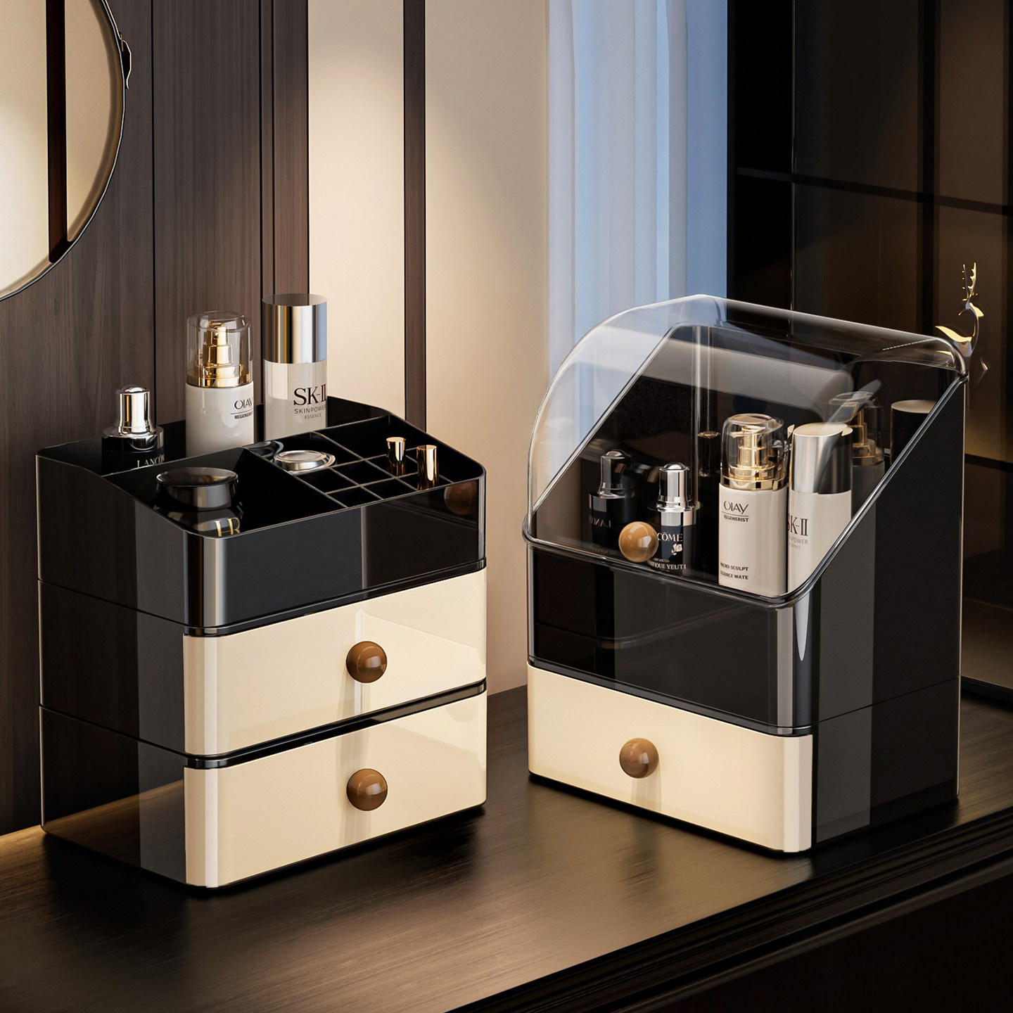 化妆品收纳盒梳妆台中古风桌面护肤品口红抽屉置物架高级化妆盒子