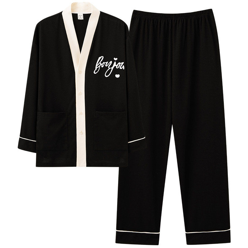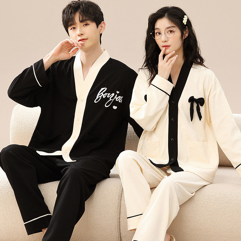 红豆春秋季睡衣情侣纯棉长袖女开衫学生套装和服男士冬夏款家卡通