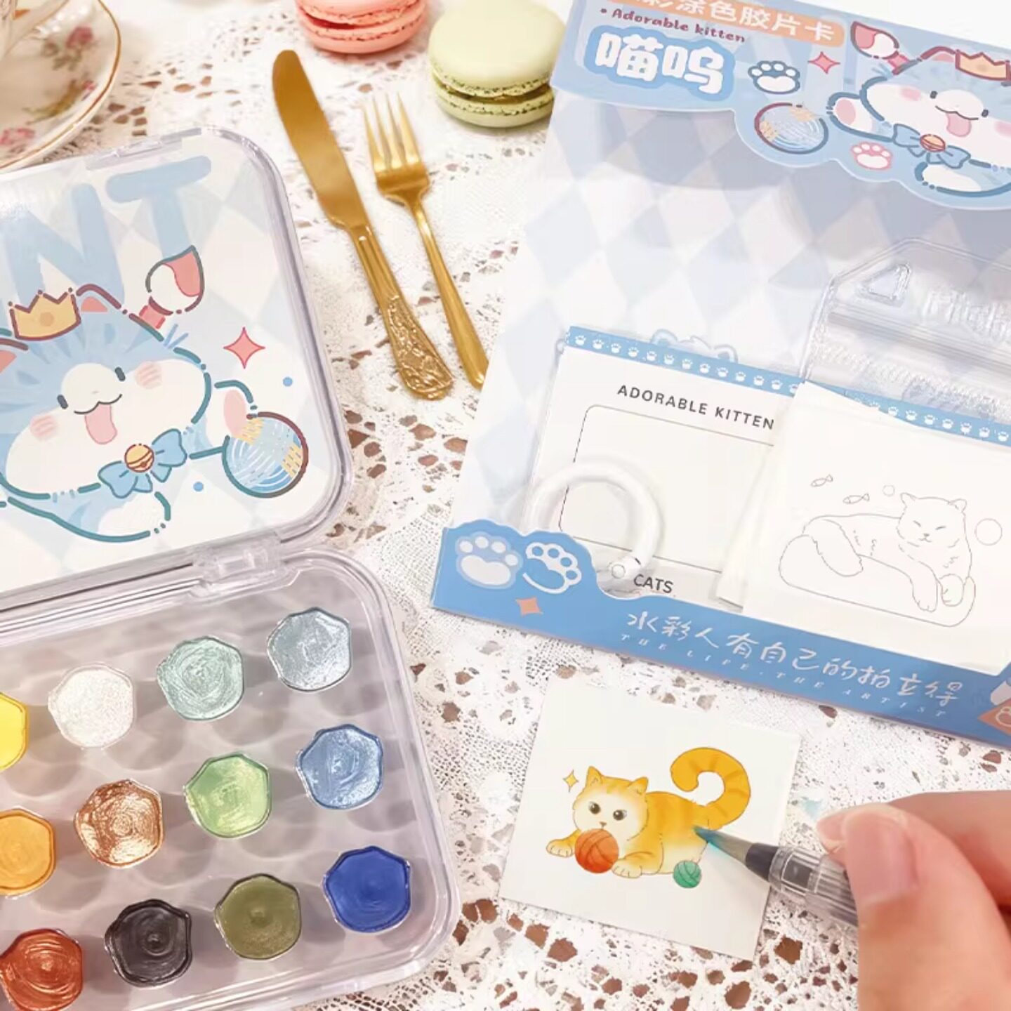 飞乐鸟萌粒15色珠光水彩颜料写生便携套装 迷你胶片卡涂色益智玩具爆闪新手学生美术绘画美甲金银固体可水洗
