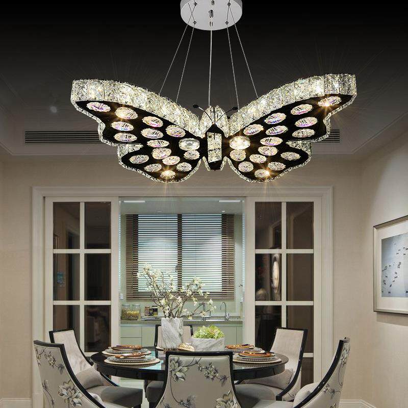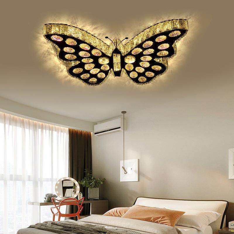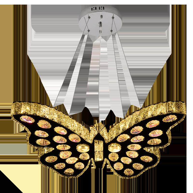 蝴蝶造型水晶卧室吊灯儿童房女孩灯具时尚餐厅灯楼梯灯饰灯具
