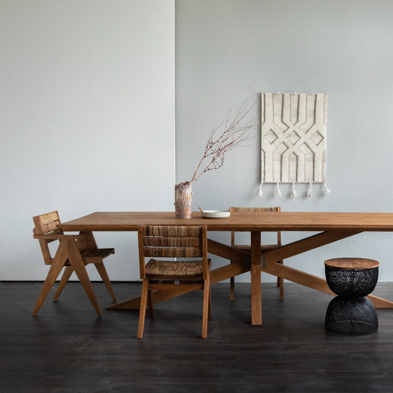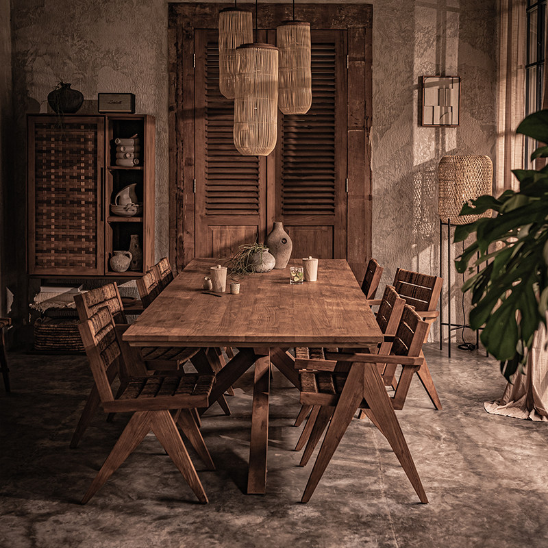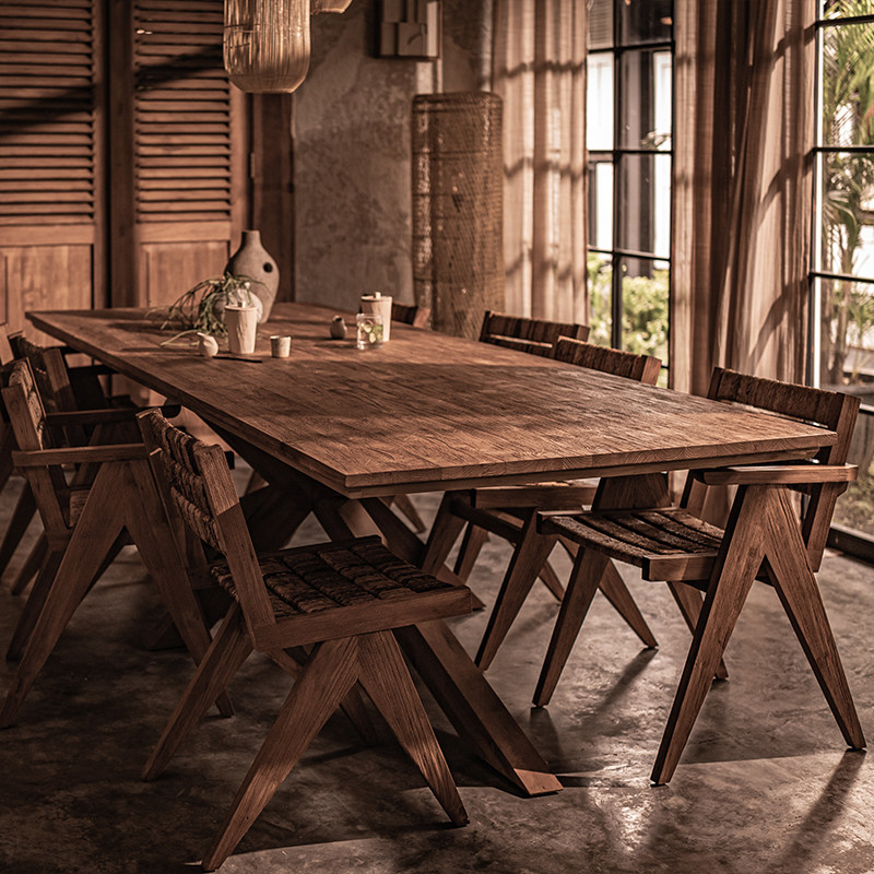 MountainLiving进口老柚木家具纯实木餐桌长方形长桌大板中古大桌