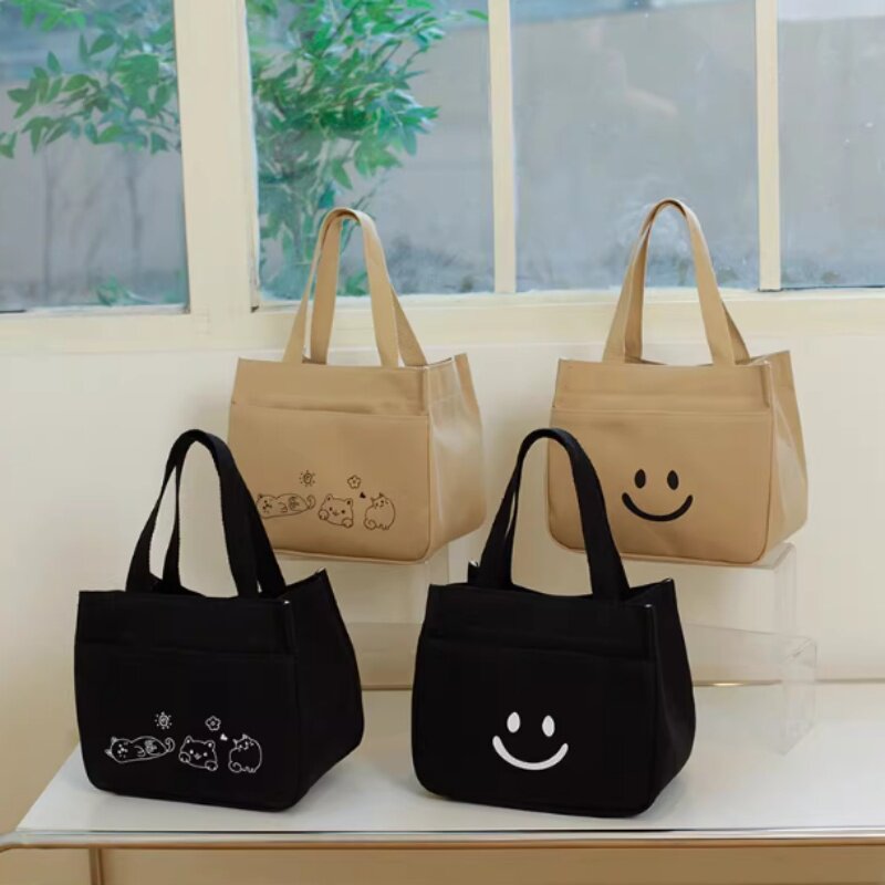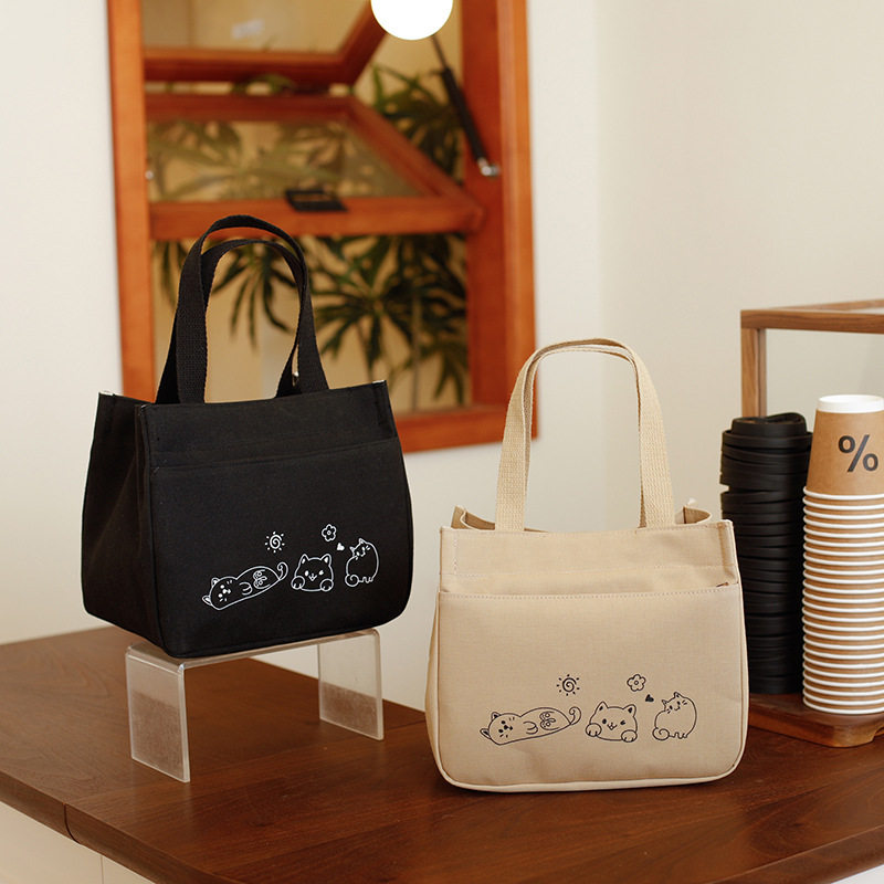 帆布饭盒包手提包宝妈外出简约立体拎包通勤加厚上班便当饭袋