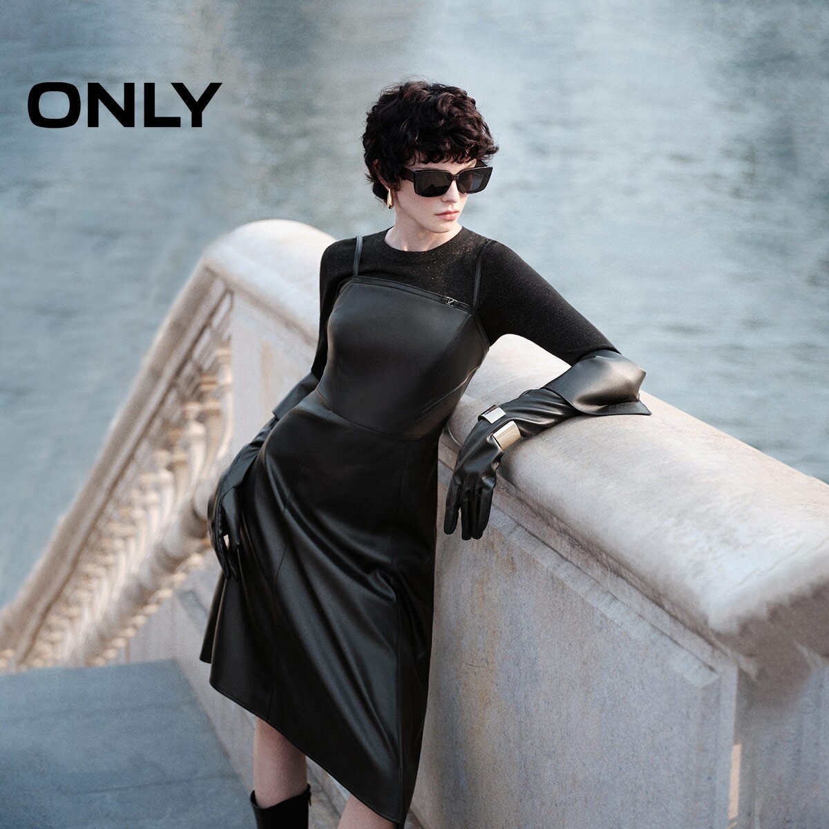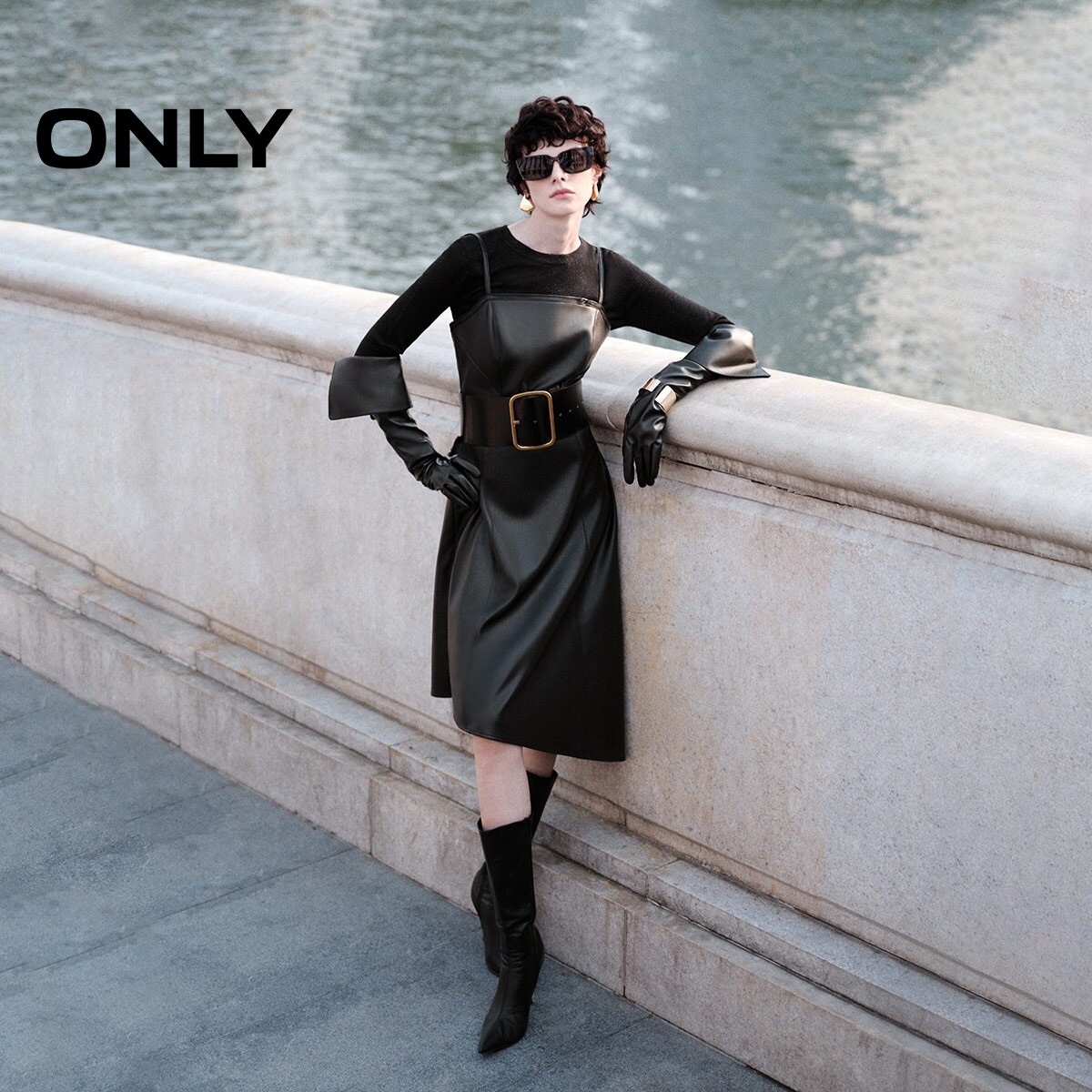 【ONLY奥莱】春季新款简约不对称收腰显瘦PU套装连衣裙女