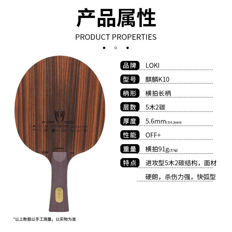 LOKI雷神麒麟K10乒乓球拍底板内置碳素玫瑰5木2碳乒乓球底板快弧