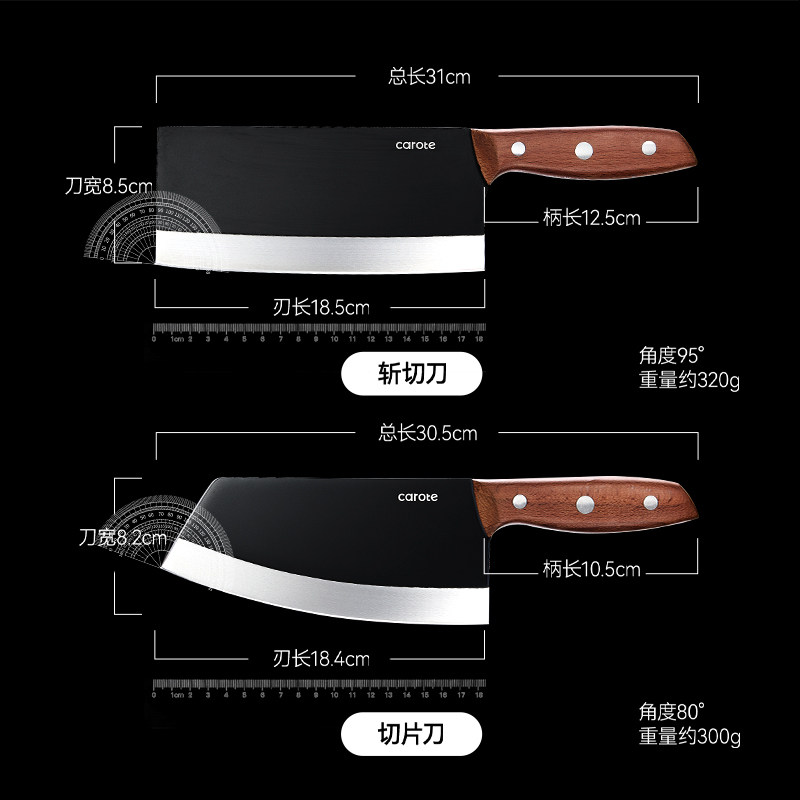 卡罗特菜刀家用斩切两用刀厨师专用不锈钢切肉切片刀阳江斩骨刀具