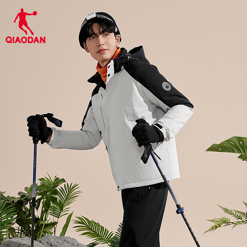 鸿星尔克加厚外套男款冬季新款男士冲锋运动风衣三合一羽绒服爸爸
