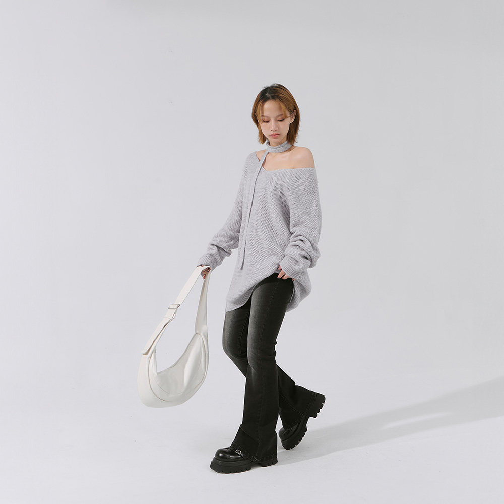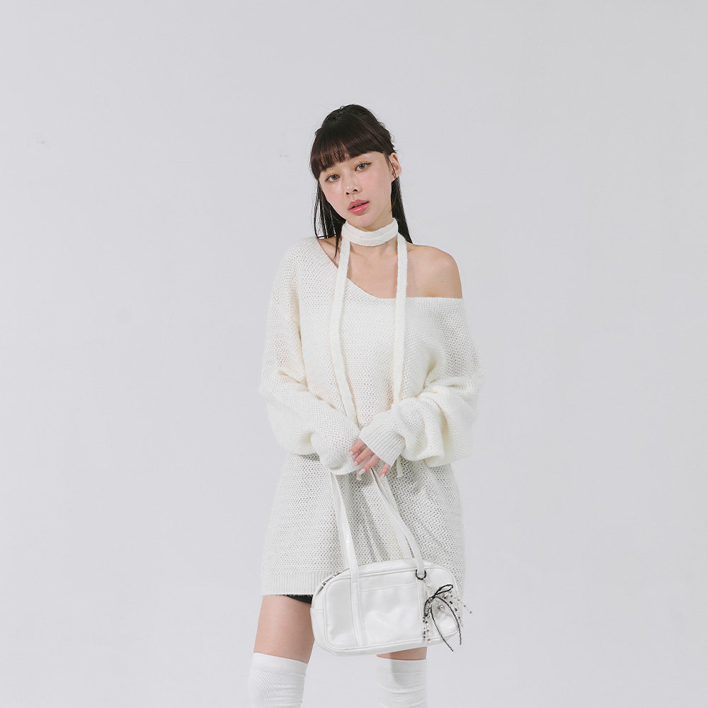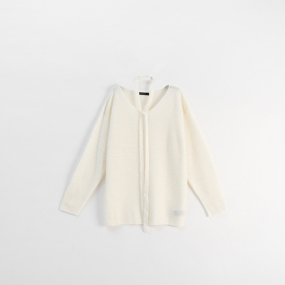 QUEENSHOP 2025秋冬新品女装质感V领设计附领带针织上衣01071215