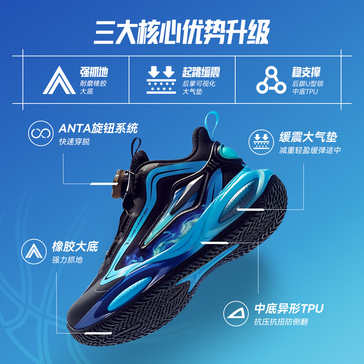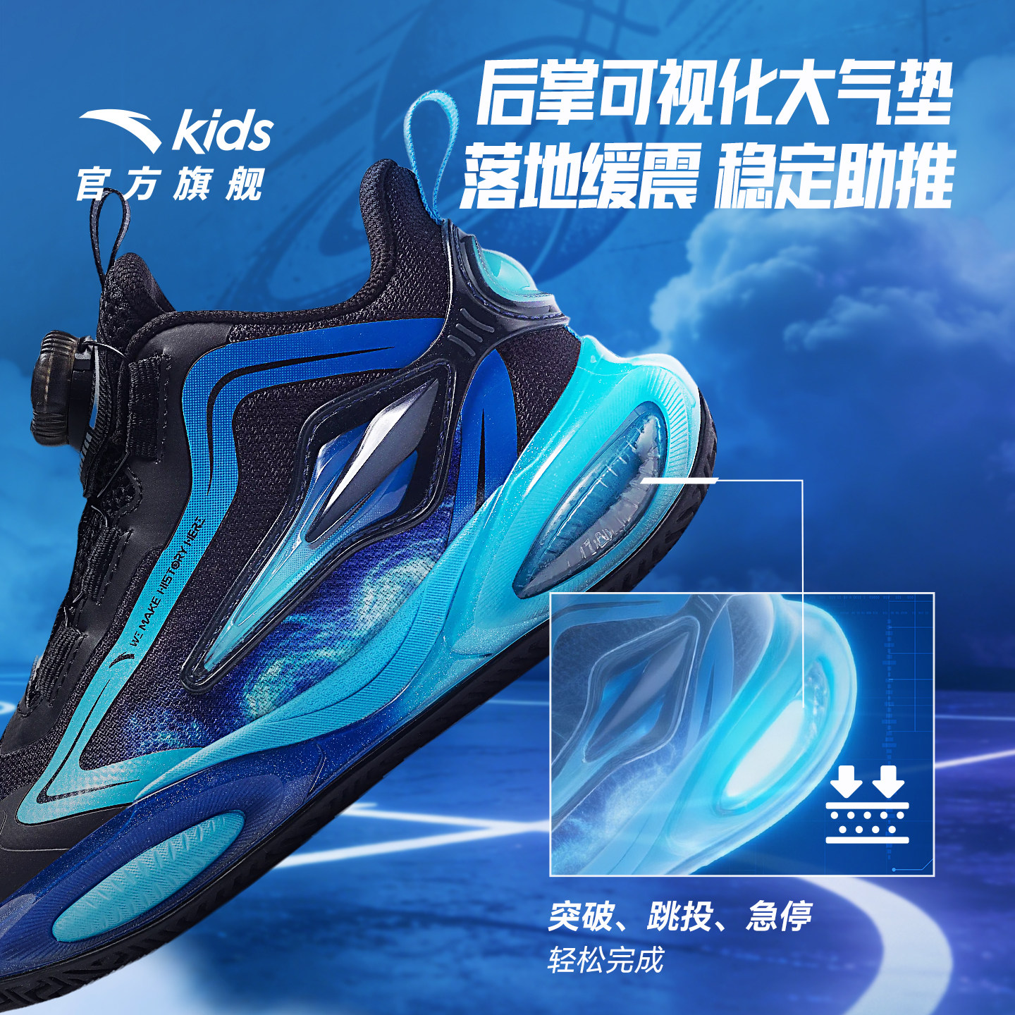 彗星|安踏儿童篮球鞋2026春夏新款男小童防滑犟弹气垫旋钮运动鞋
