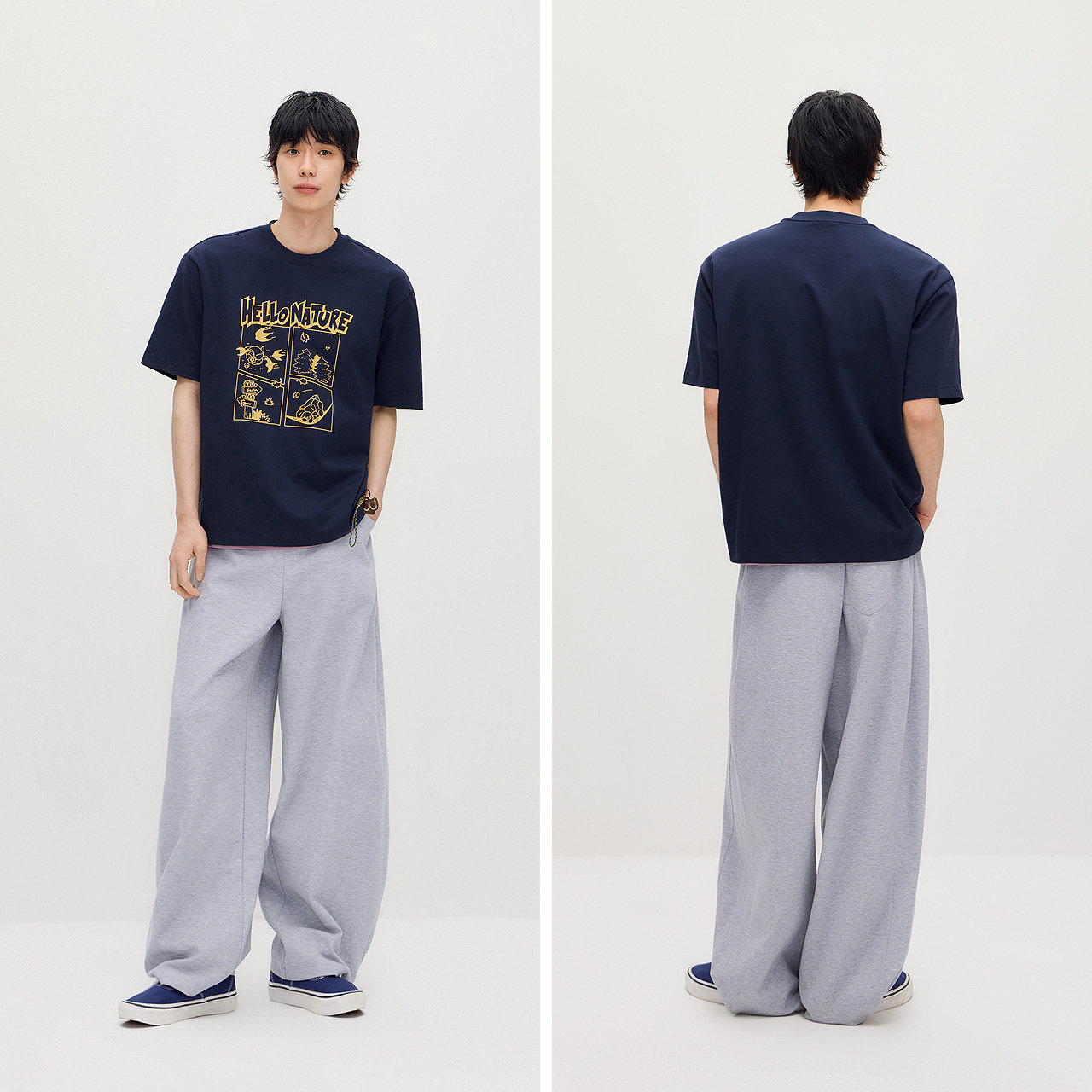 HM男装女装T恤春季透气圆领户外出游运动短袖内搭简约上衣0685816