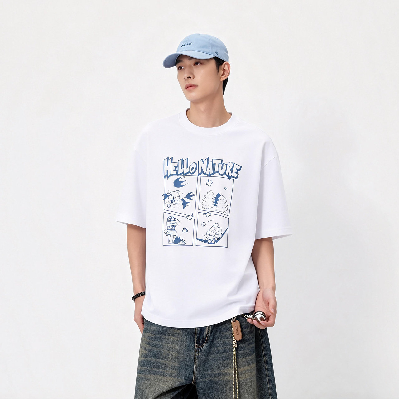 小尼力重磅纯色打底衫纯棉oversize白色短袖T恤男夏季体恤上衣服