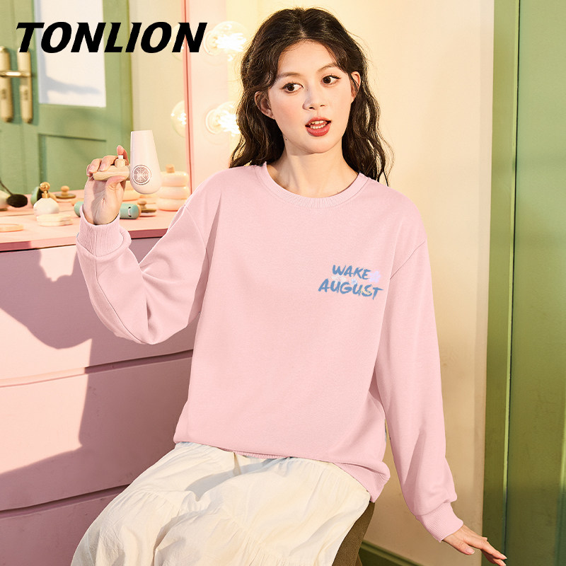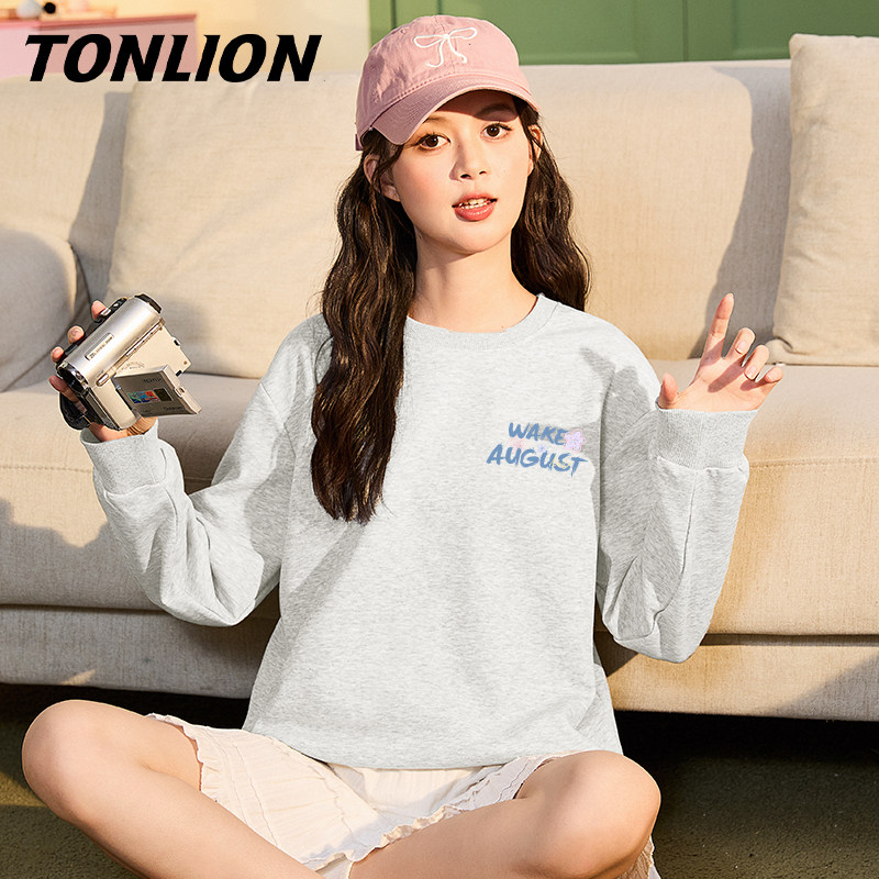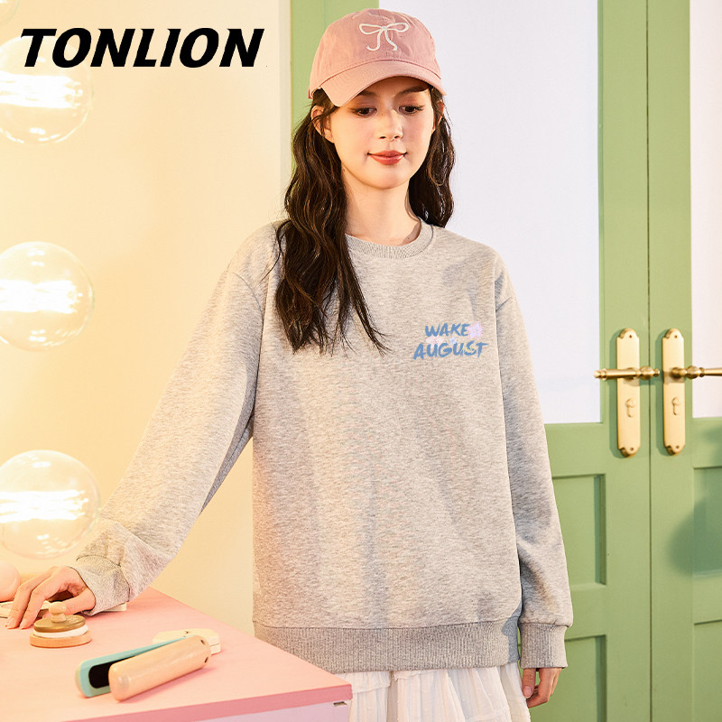 唐狮蓝色圆领无帽加绒卫衣女2025新款爆款宽松春秋款早秋外套VB