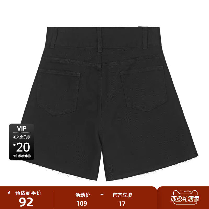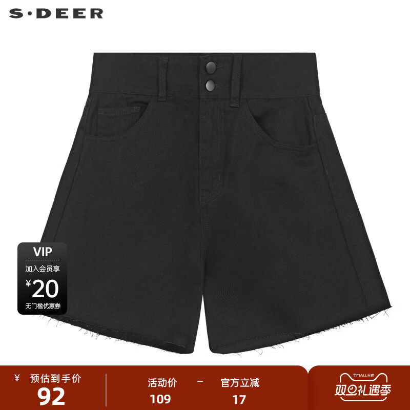 sdeer圣迪奥女装秋个性高腰插袋做旧毛边A字短裤S24180901