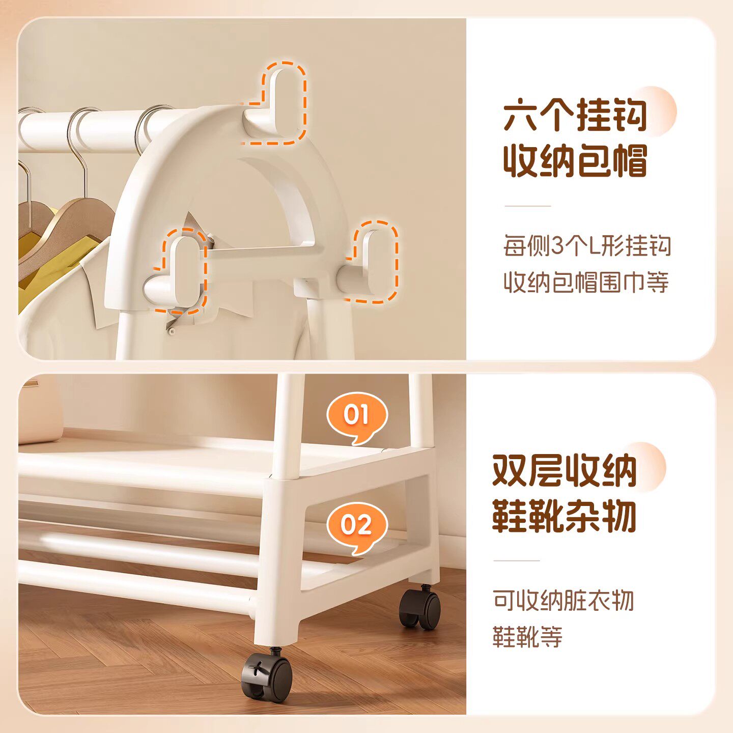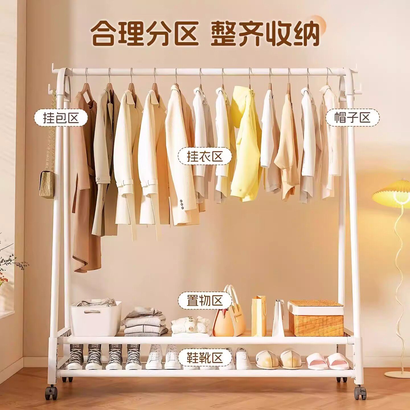 简易衣帽架落地卧室可移动挂衣架子客厅衣服收纳置物架阳台晾衣架