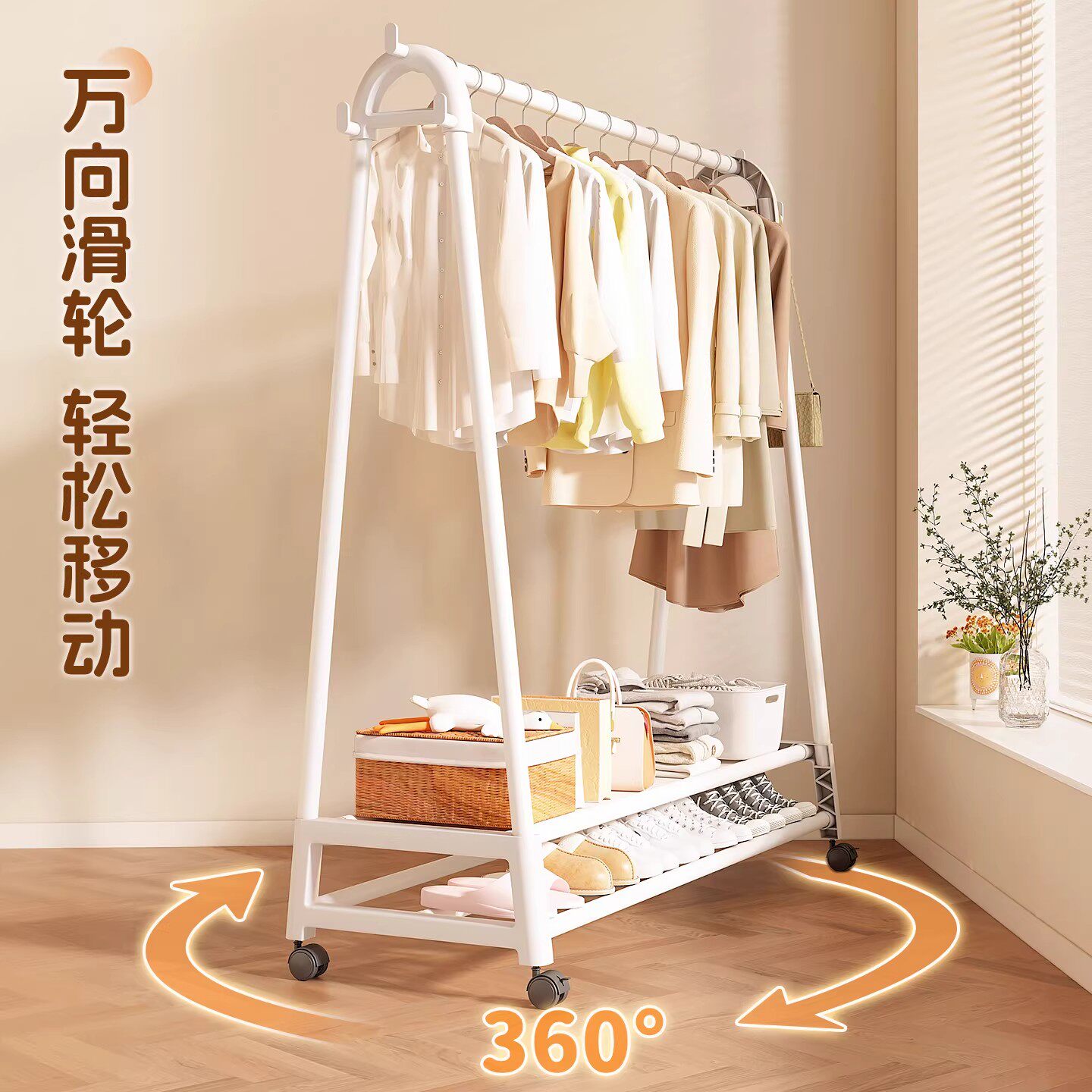 晾衣架落地家用可移动卧室凉衣架阳台挂衣服架子室内简易杆衣帽架