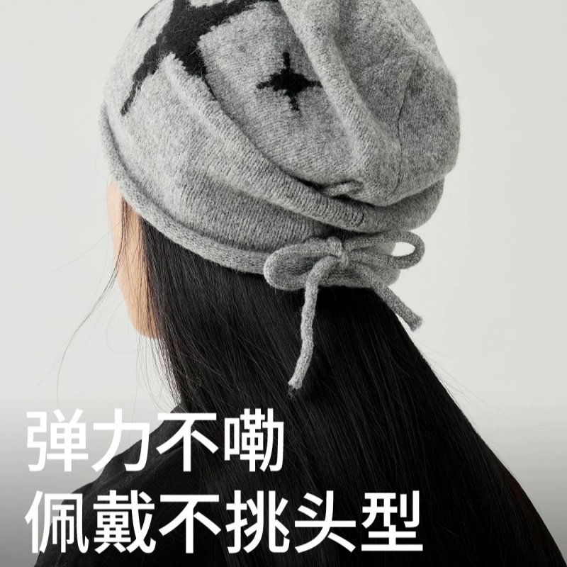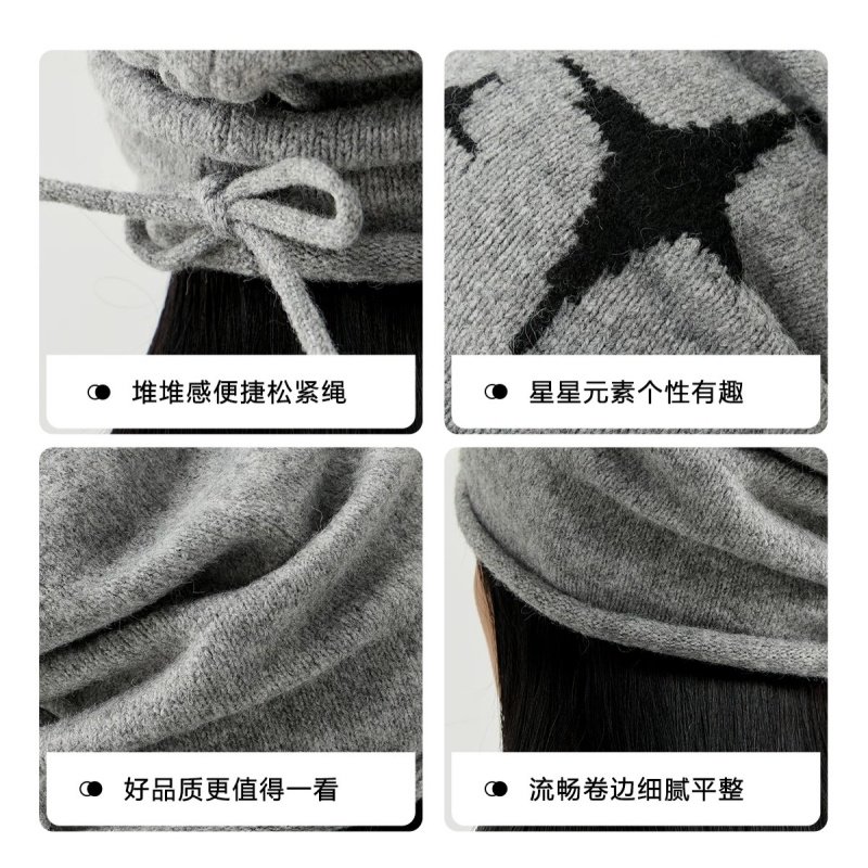 美式包头冷帽2025新款防寒针织帽大头围韩系氛围感堆堆帽黑色红色