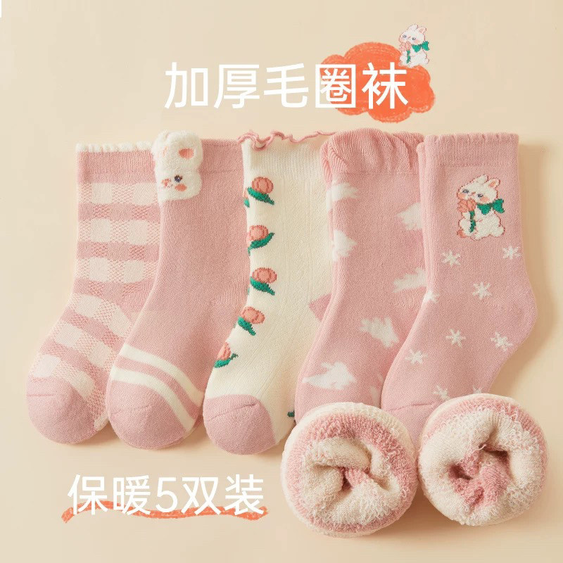 儿童袜子女童秋冬加绒加厚毛圈袜厚款冬季保暖女孩宝宝纯棉中筒袜
