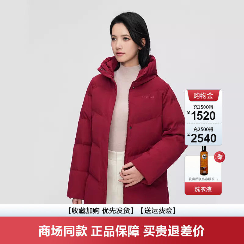 鸭鸭中戏pro羽绒服女冬季反季中长款羽绒服过膝加厚95绒波兰鸭绒J