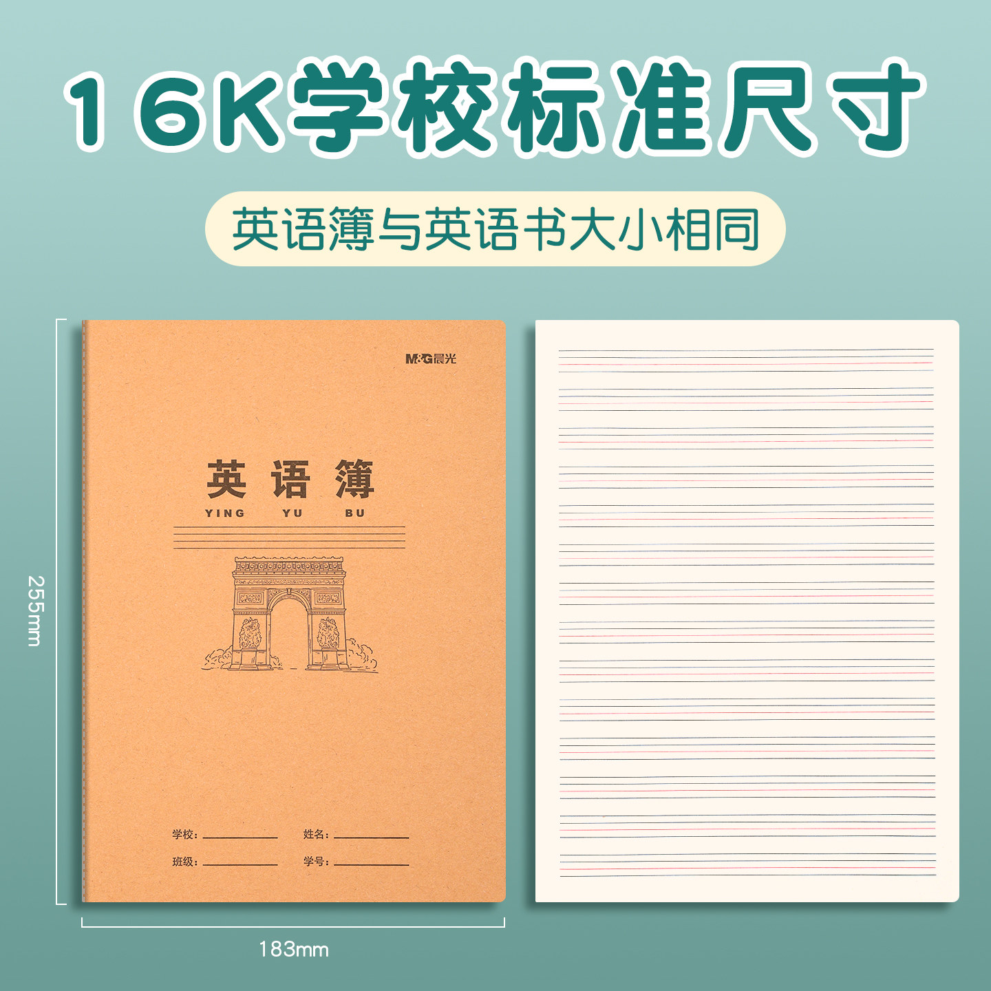 晨光英语簿学生作业本全国统一小学生学习用品英语作文本牛皮纸加厚英语本课业本中学生学校推荐练习本笔记本