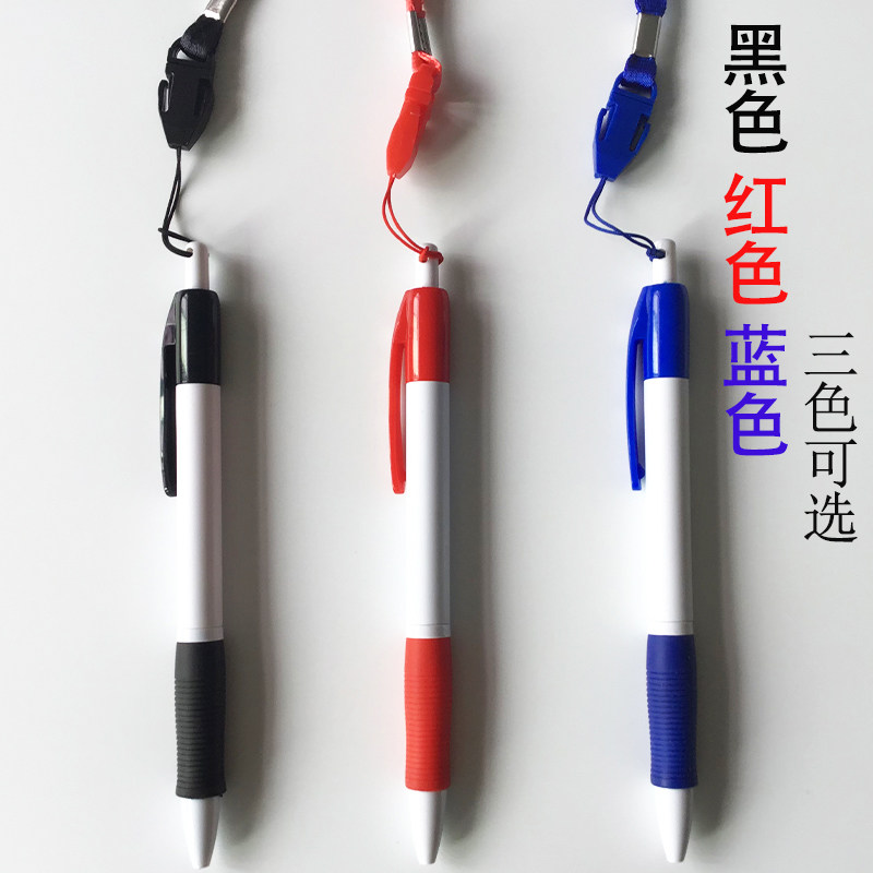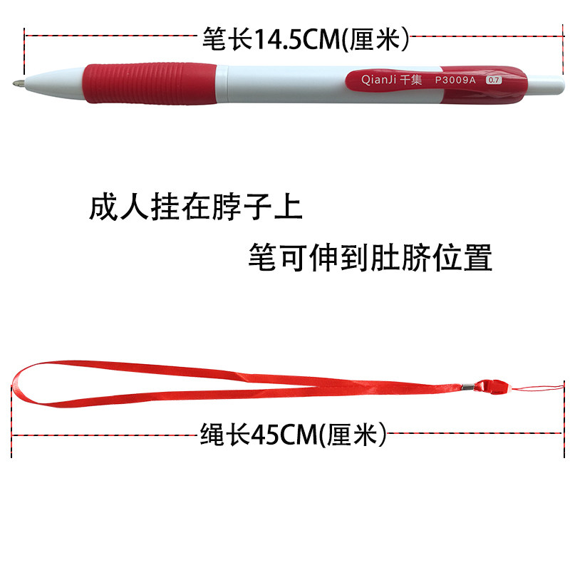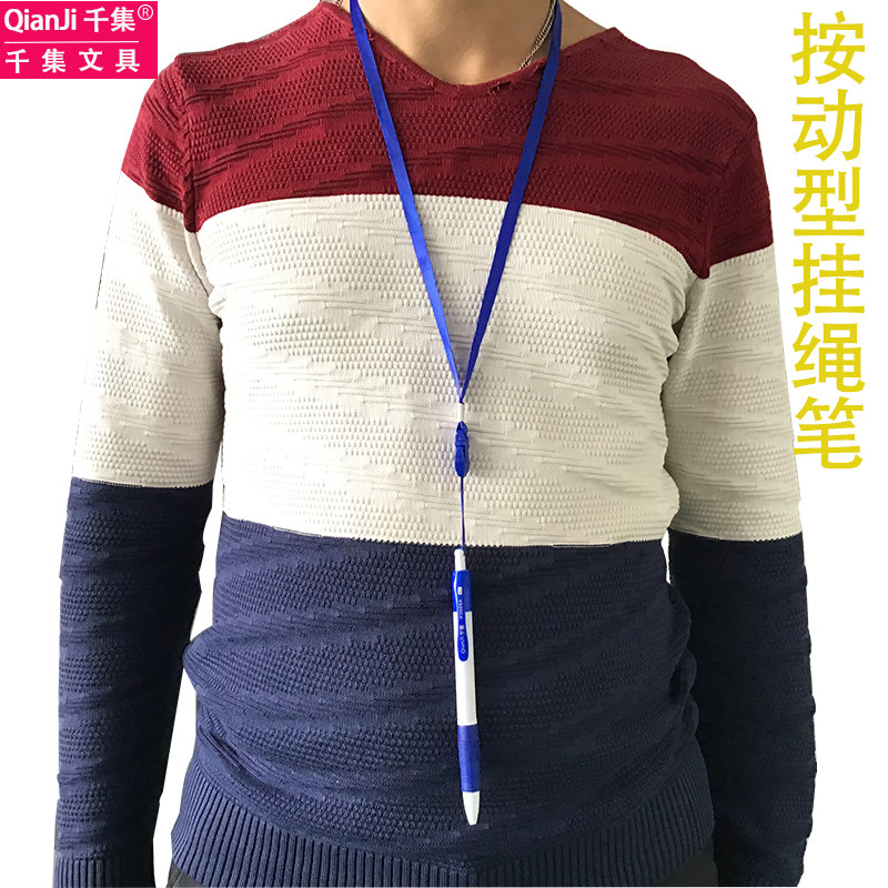 千集挂绳中性笔按压挂脖黑色水性笔防丢防掉护士笔可挂绳子圆珠笔