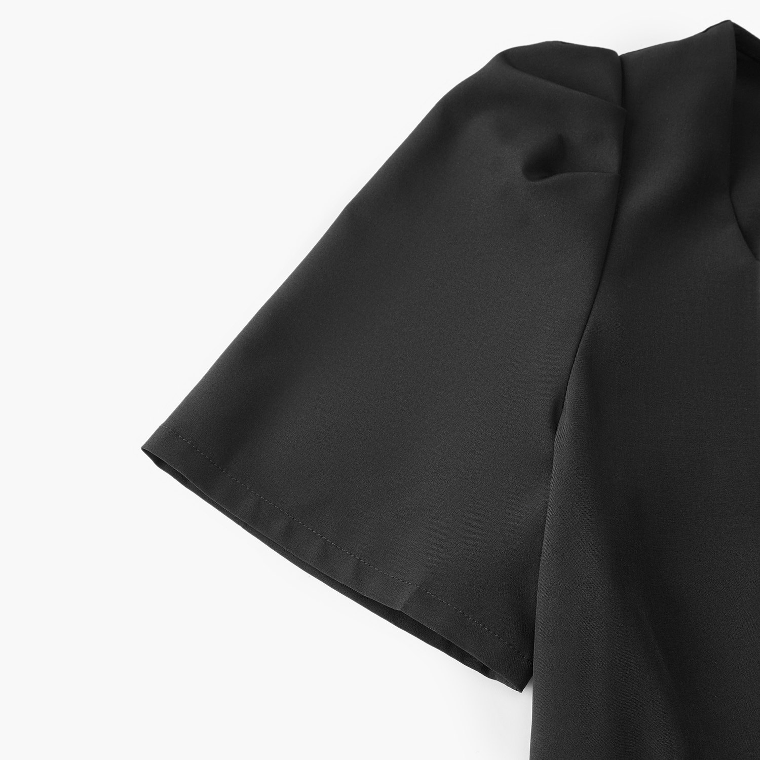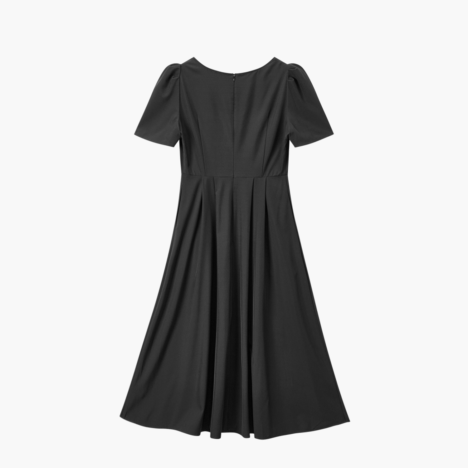 【热销补货】欧时力 褶皱短袖连衣裙女2026春新款收腰显瘦小黑裙