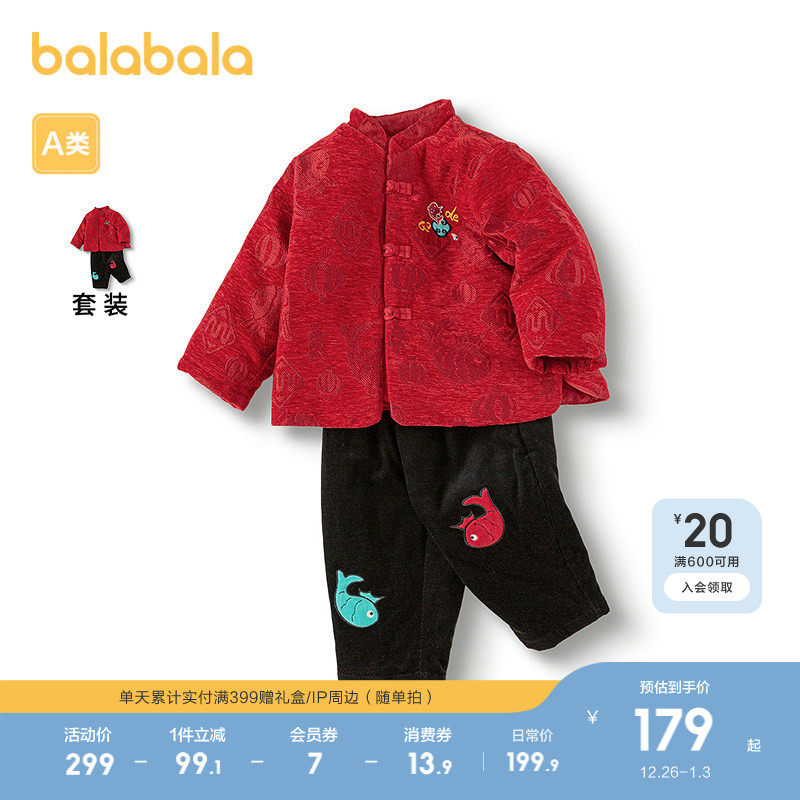 巴拉巴拉童装宝宝套装男童2025新款春秋装两件套加绒加厚保暖舒适