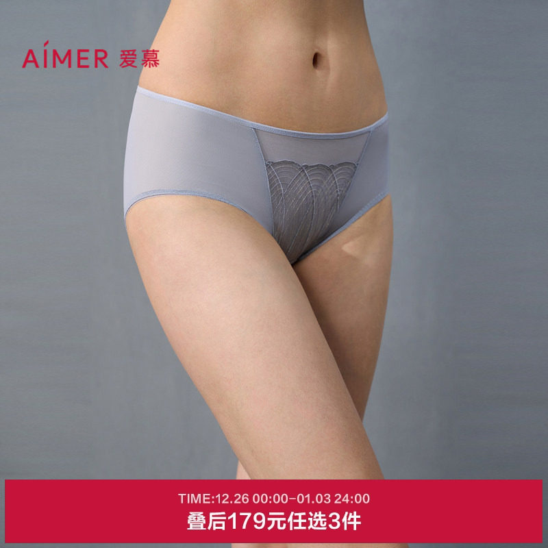 3条179元|爱慕24AW丝路花雨内裤女棉质底裆性感蕾丝中腰平角裤