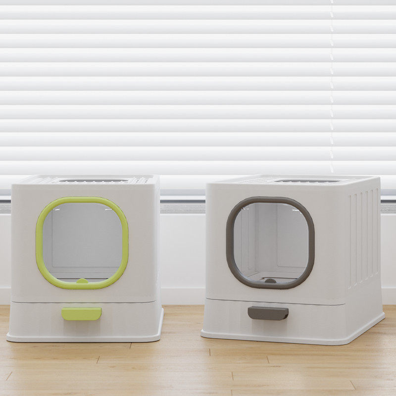 批发全封闭猫砂盆大号塑料折叠防臭防外溅猫厕所抽拉猫咪清洁用品