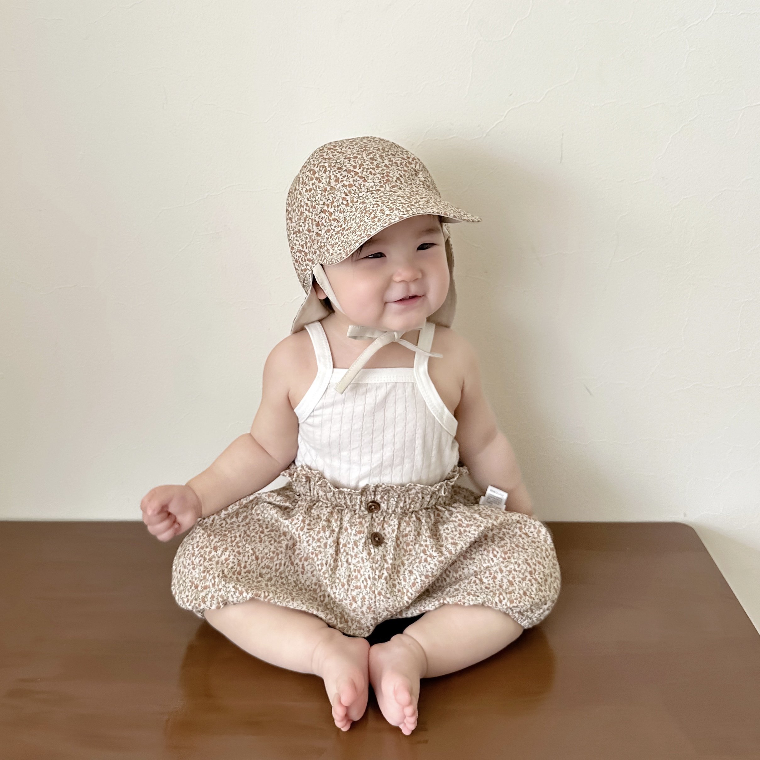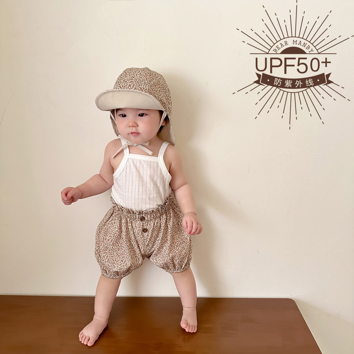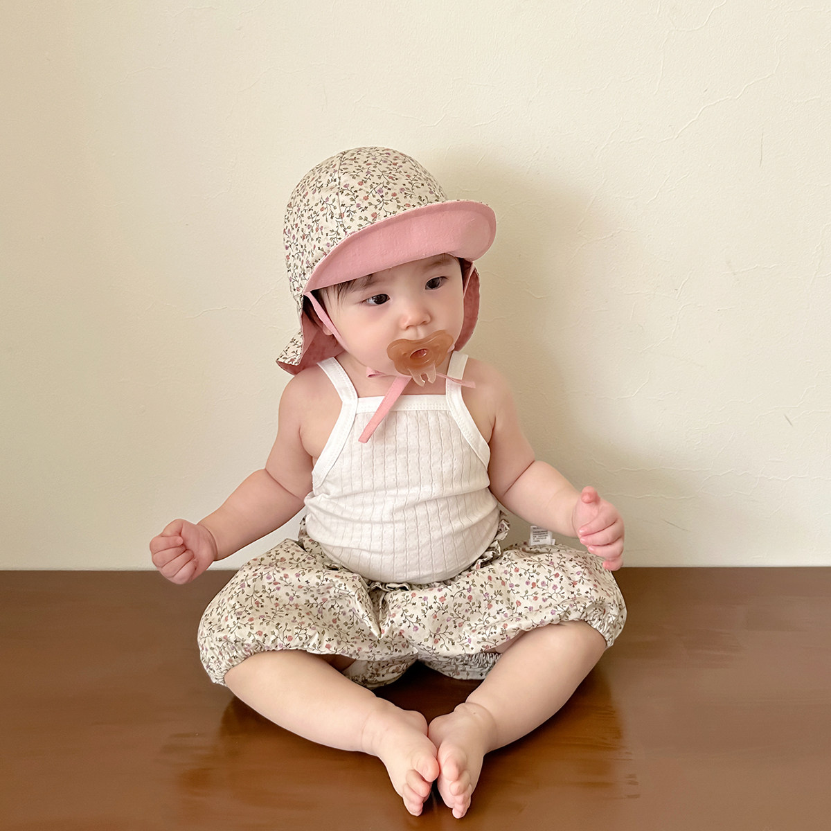 小碎花双面婴儿遮阳帽大檐护颈防晒出游儿童女宝宝太阳帽短裤春夏