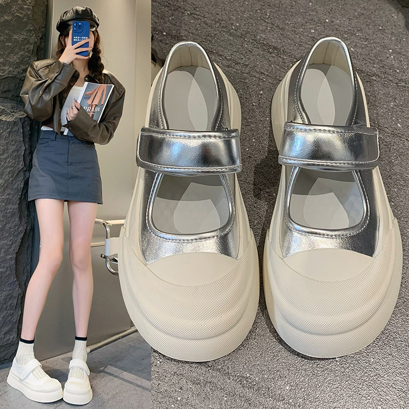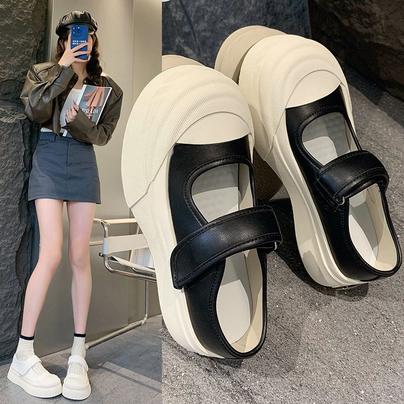 大头丑萌魔术贴玛丽珍女2026夏季新款松糕厚底增高圆头浅口小皮鞋