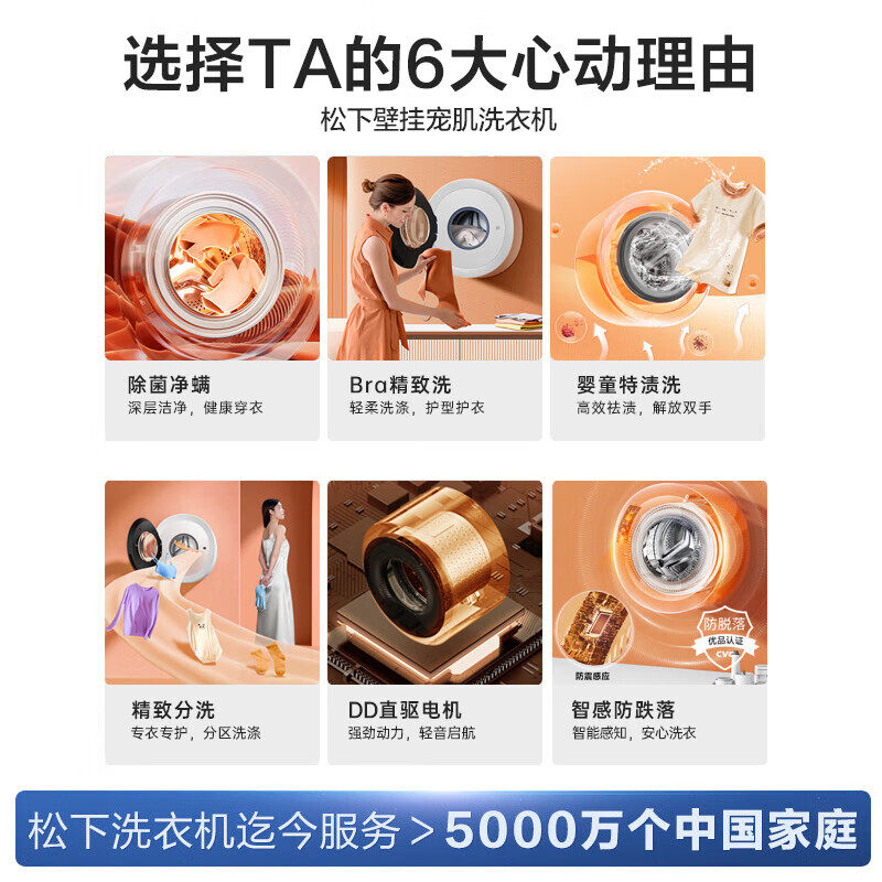 松下壁挂洗衣机3kg母婴高温除菌除螨内衣变频洗烘机A510W/AD510S