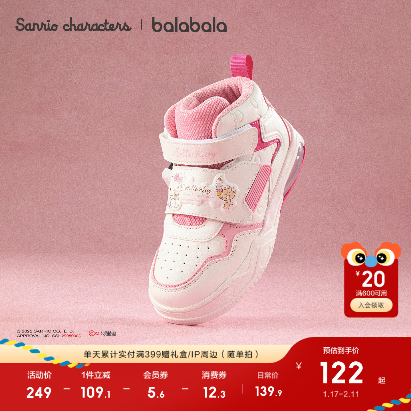 三丽鸥联名高帮板鞋,甜美透气运动鞋
