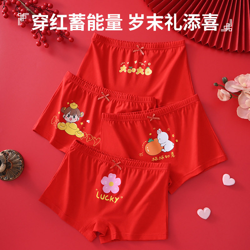 女童本命年纯棉内裤儿童红色平角短裤马年女孩12岁新年喜庆四角裤