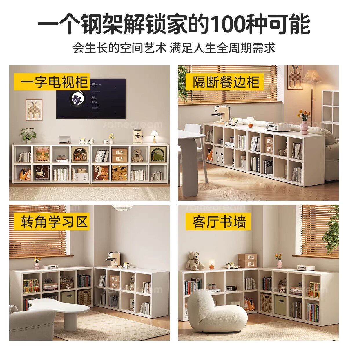 三梦钢制格子柜书架落地置物架儿童幼儿园书柜靠墙自由组合八格柜