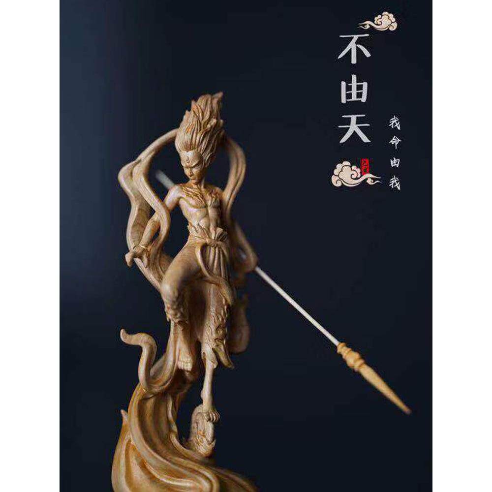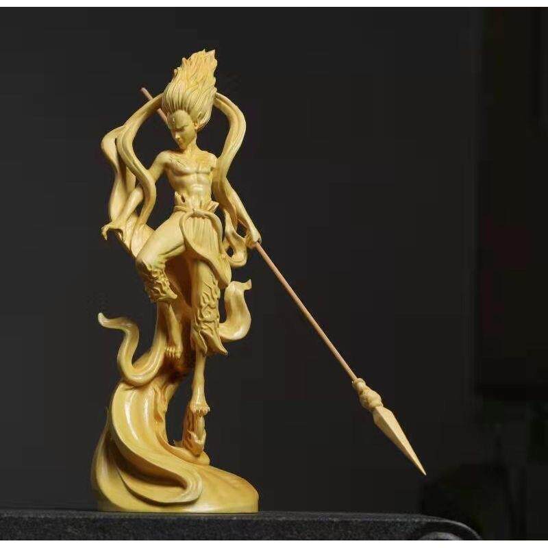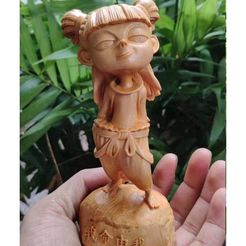 崖柏实木雕刻哪吒降世魔王魔童人物中控台车载摆件饰品手把件送礼