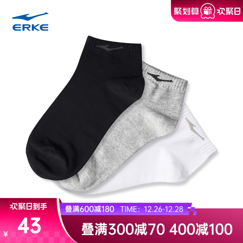3双装鸿星尔克袜子男秋冬男士纯色百搭短袜男款跑步运动短款男袜