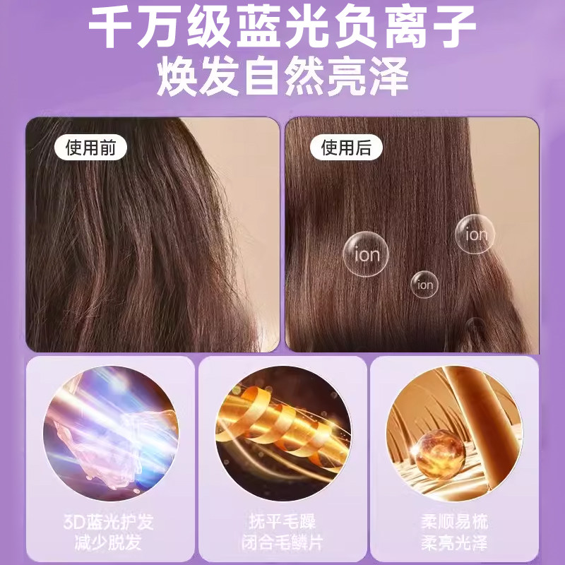 5000万水润负离子+3D蓝光护发 头发柔顺
