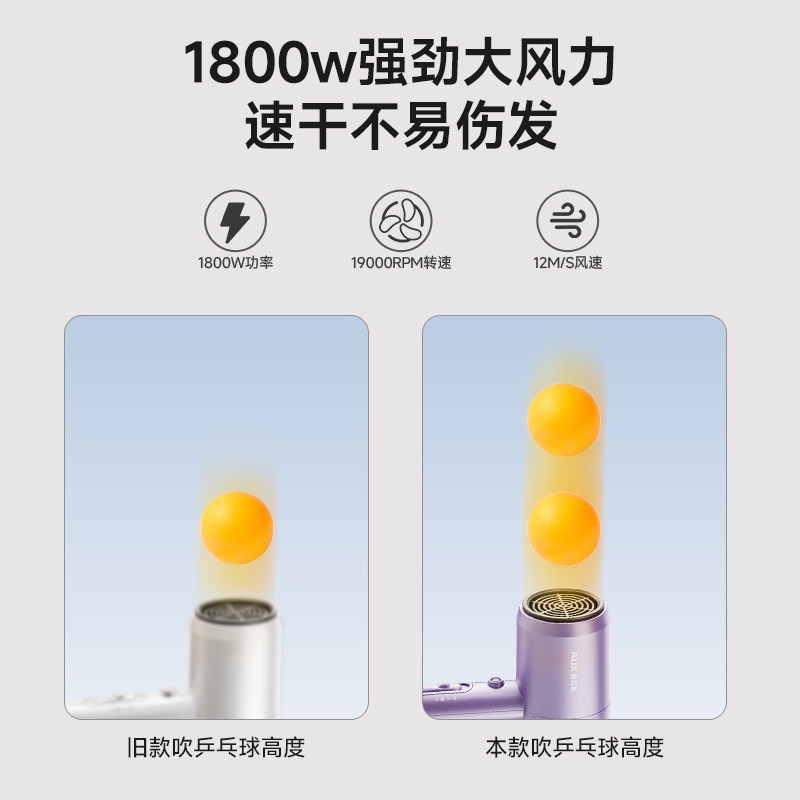 奥克斯吹风机负离子护发静音速干1800w家用蓝光宿舍电吹风不伤发