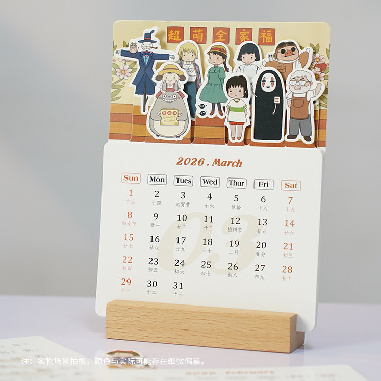 异形台历定制创意超萌全家福2026马年福气满满花异装饰台历个性卡通风日历礼品批发实木底座日历台历定做专版
