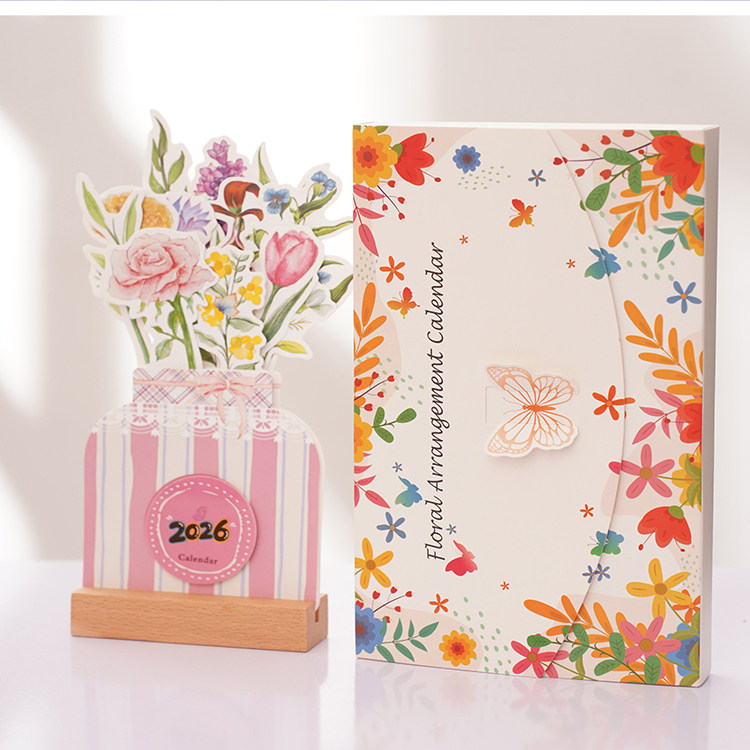 2026年台历礼盒装创意简约办公月历定制笔筒木质桌面摆件马年打卡日历计划本记事历新年礼品物流保险银行台历