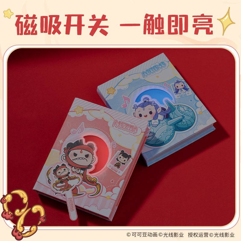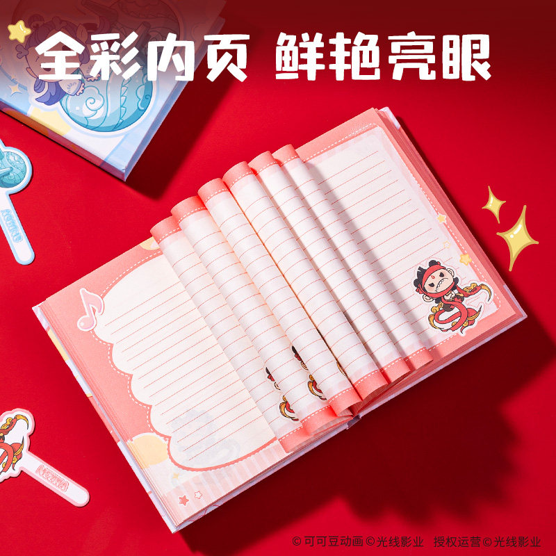 得力哪吒联名闪闪发光本魔童闹海好用文具敖丙萌趣可爱磁控开关可爱内页横线小巧便携笔记本本子加厚纸张
