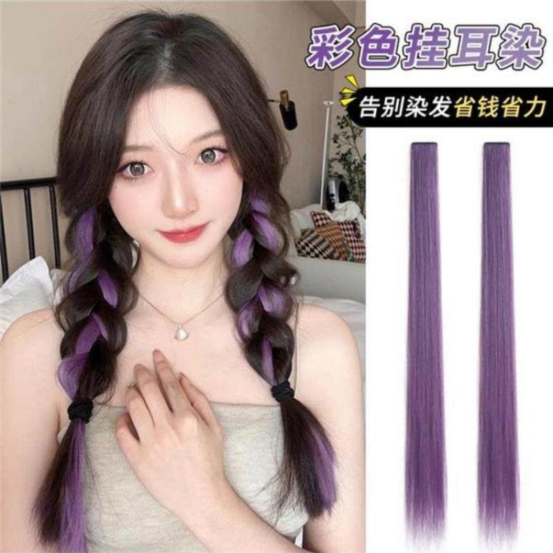 挂耳染发片卷发挑染假发片女一片式隐形彩色接发贴片蓬松漂染长发