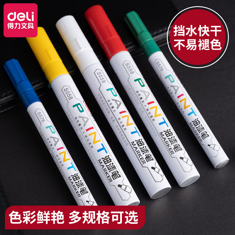 得力油漆笔轮胎笔白色记号笔不易掉色褪色防水油性马克笔画鞋笔涂鸦笔金色签到笔签字笔黑色补漆笔黄色银色