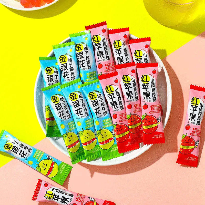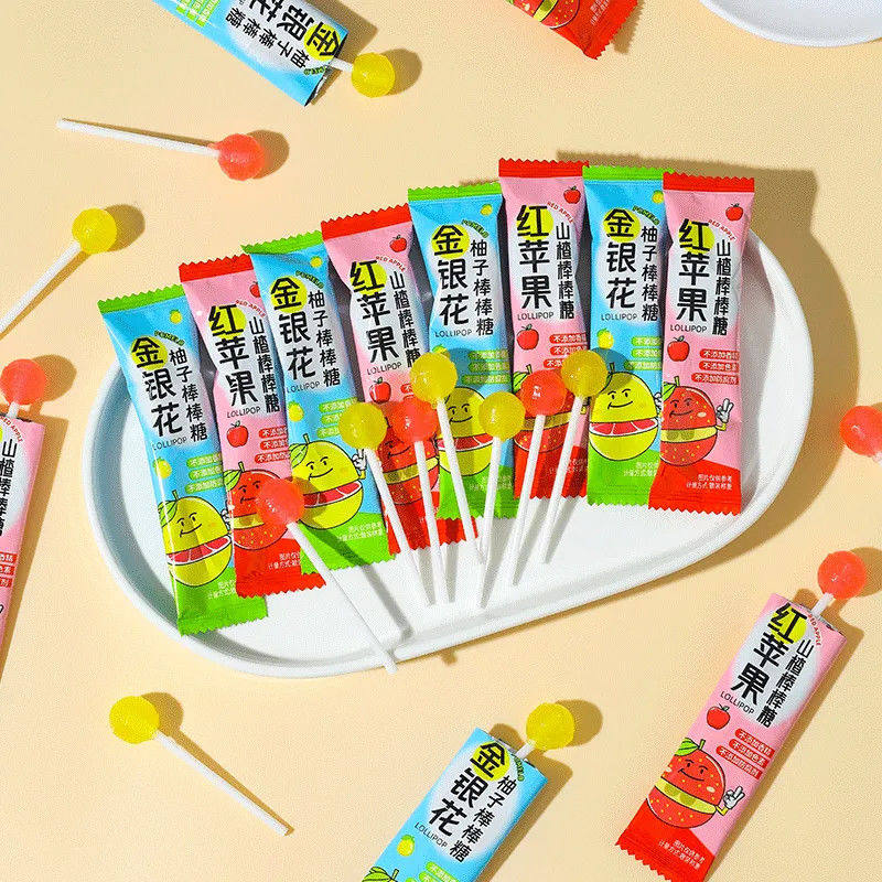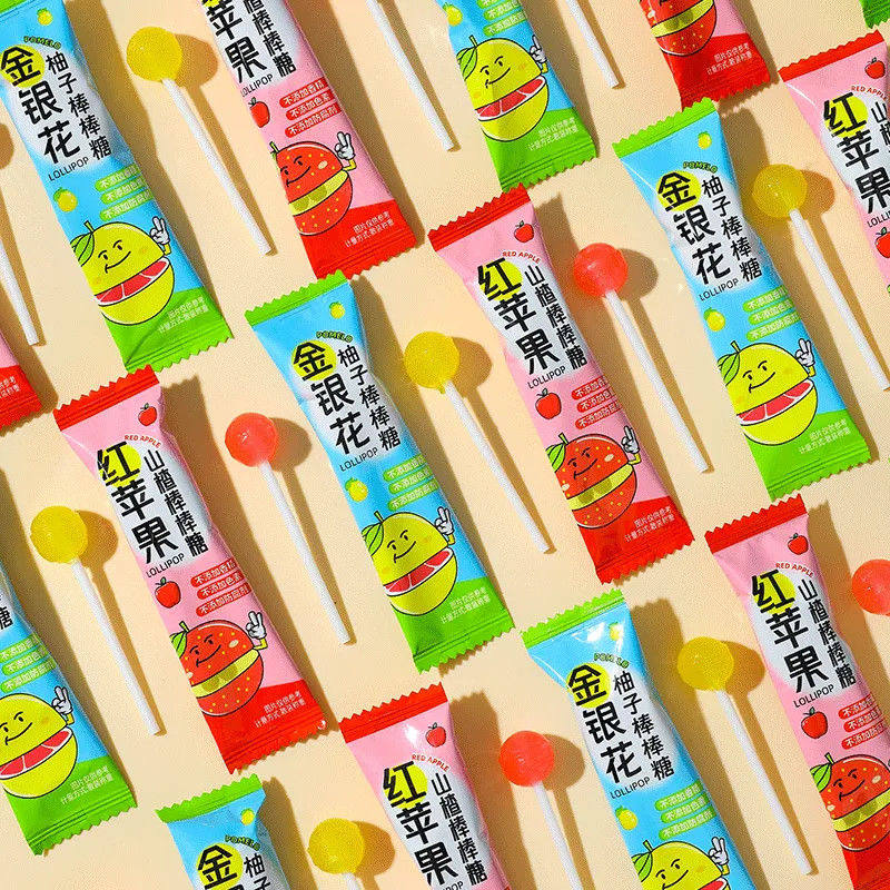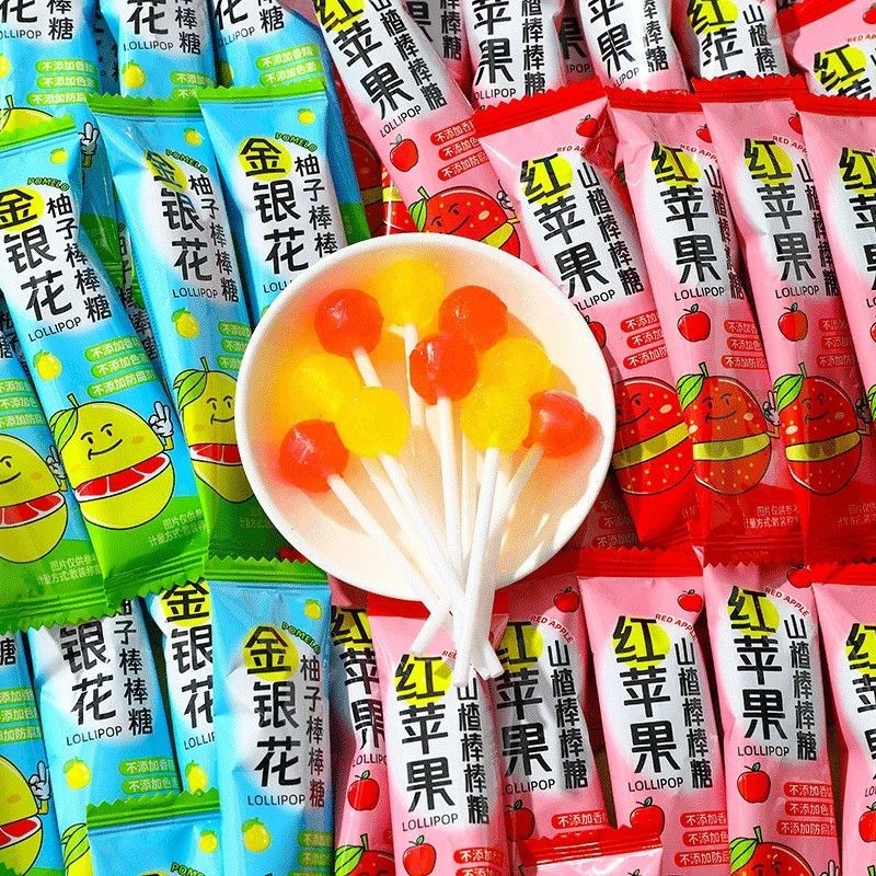 金银柚子棒棒糖红苹果山楂水果味硬糖儿童解馋零食糖果无添加剂