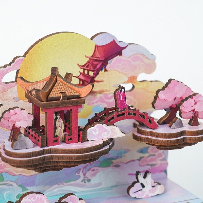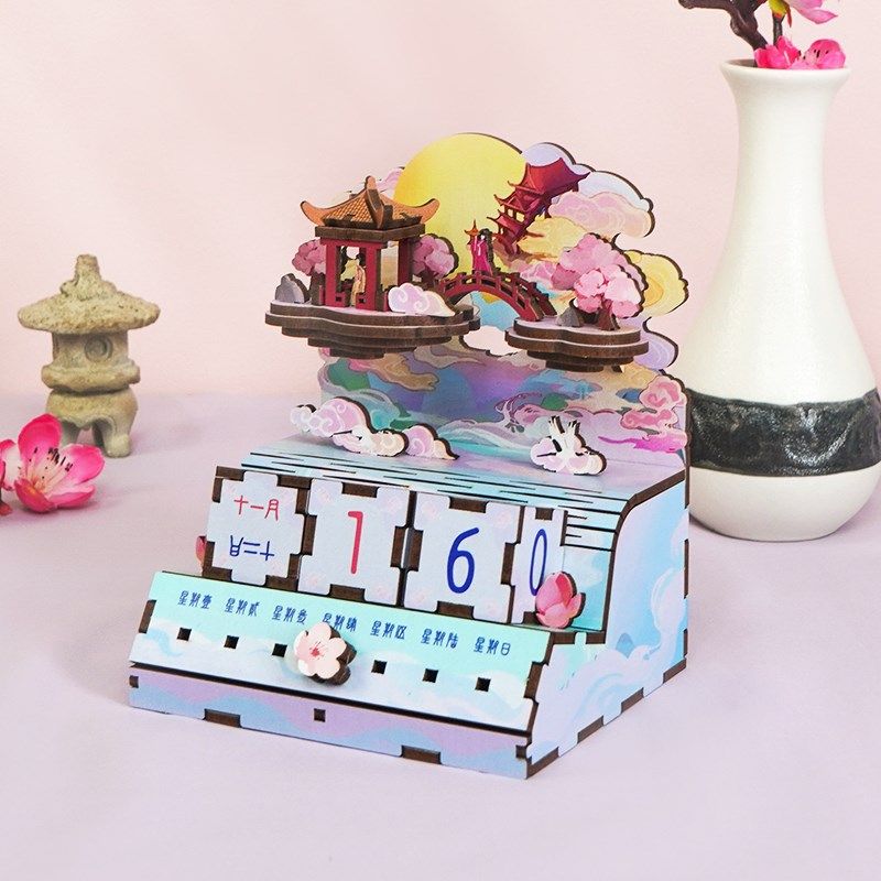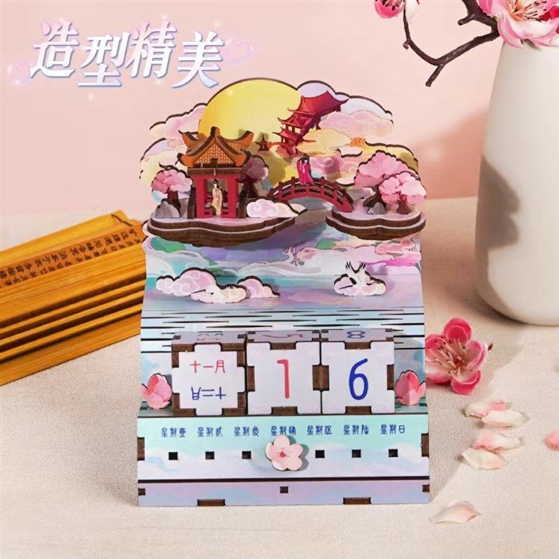 万年历云中瑶台木质翻转方块拼图日历桌面摆件DIY积木模型礼物女